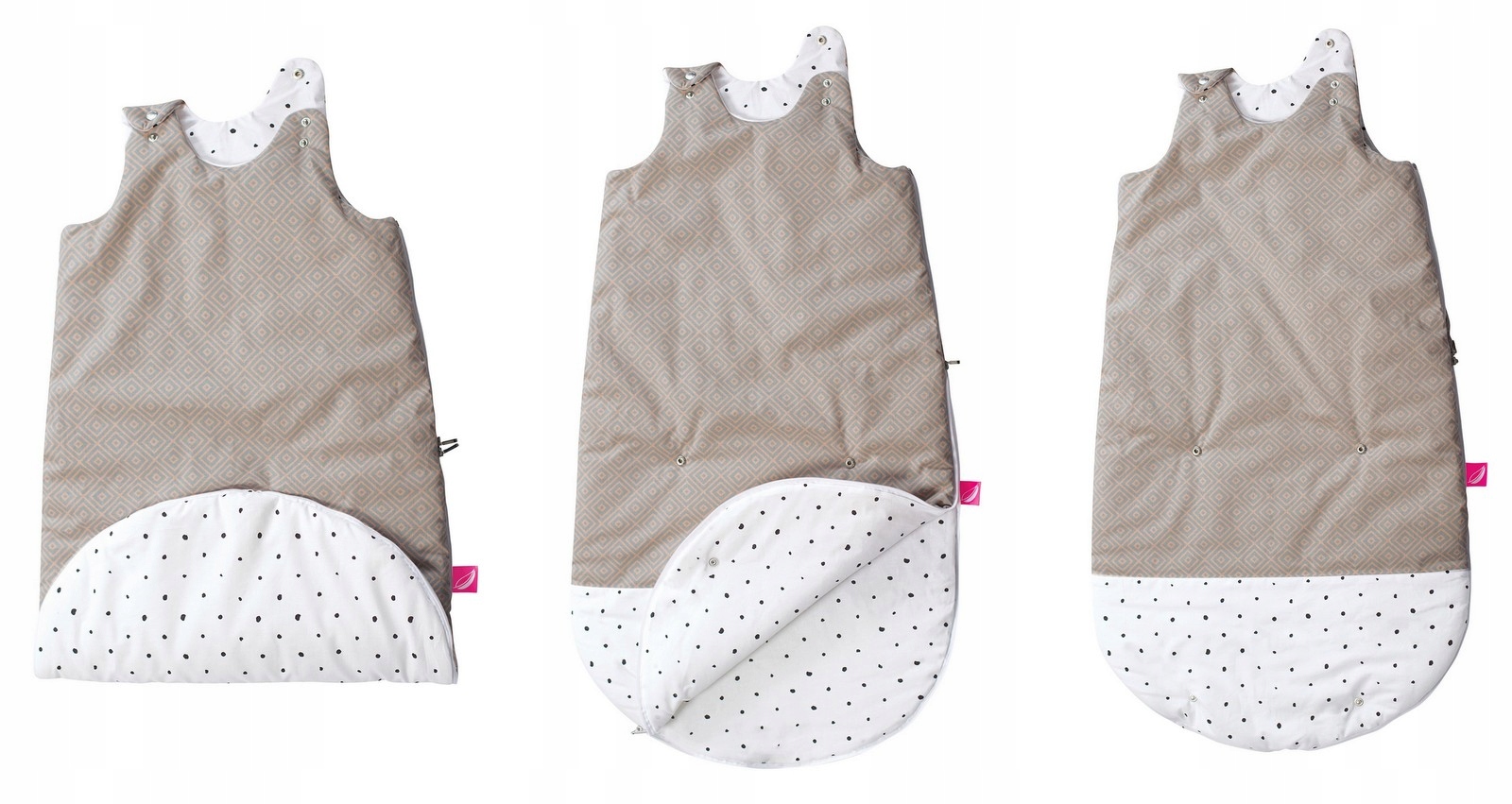 Завдяки вкладці, що закривається на застібки, спальний мішок 2-в-1 росте разом з дитиною, пропонуючи два розміри в одному: 3 -6 місяців із закритою нижньою вкладкою та 6-18 місяців із відкритою вкладкою. Додаткові кнопки на плечах дозволяють зменшити шию (рекомендовано для дітей до 4,5 кг).