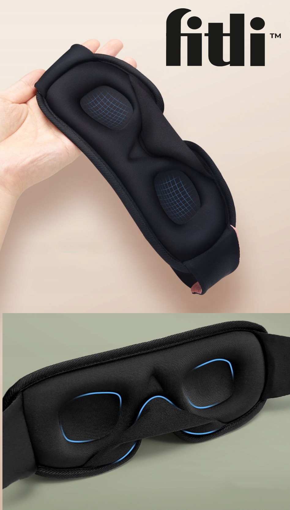 СПАЛЬНИЙ НАБІР ДЛЯ ОЧНИКІВ, 3D РЕГУЛЬОВАНА МАСКА, ЧОРНІ БЕРУШИ
