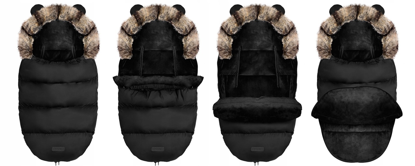 СПАЛЬНИК ДЛЯ КОЛЯСКИ З ВУШКАМИ 4В1 З ХУТРОМ, ТРИШАРОВИЙ, ЧОРНИЙ