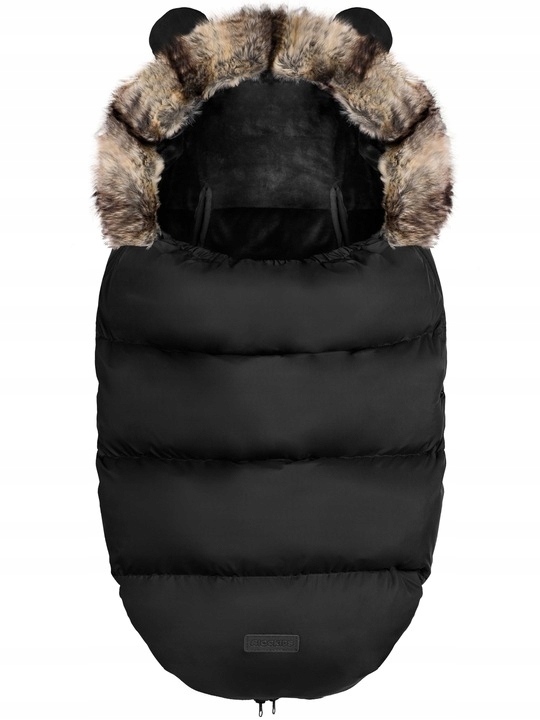 ⭐СПАЛЬНИК ДЛЯ САНКІВ З ВУШАМИ 4В1 З ХУТРОМ, ТРИШАРОВИЙ, ЧОРНИЙ⭐