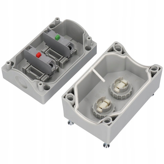 водонепроникна касета-стоп-стоп, дві підстрибуючі кнопки зеленим та червоним кольором. Один гойдалки (ні), другий, перероблений (NC). Ідеальний пристрій для промислових застосувань також в умовах підвищеної вологості, запилених, зовнішніх установ.