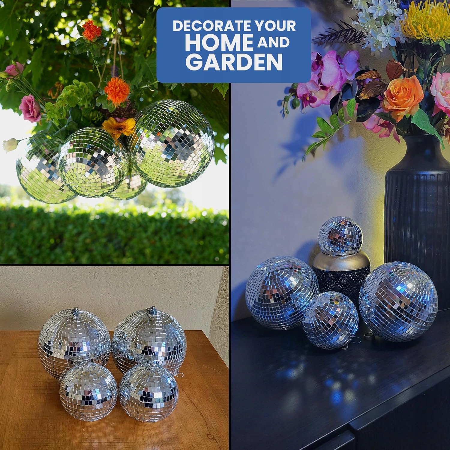 Додатковий опис: Здивуйте своїх близьких гостей з цією блискучою прикрасою - диско-куля також ідеально підходить як класна прикраса для вашої вітальні, ванної кімнати чи спальні. Їх легко повісити за допомогою прозорої рибальської нитки. Ми подбали про те, щоб в упаковці було кілька метрів прозорої рибальської нитки, тож це не доставить вам клопоту, а також створить ілюзію диско-кулі, що ширяє в повітрі. 1,41 кг. 4 штуки: 2 x Ø15,2 см + 2 x Ø10,2 см.