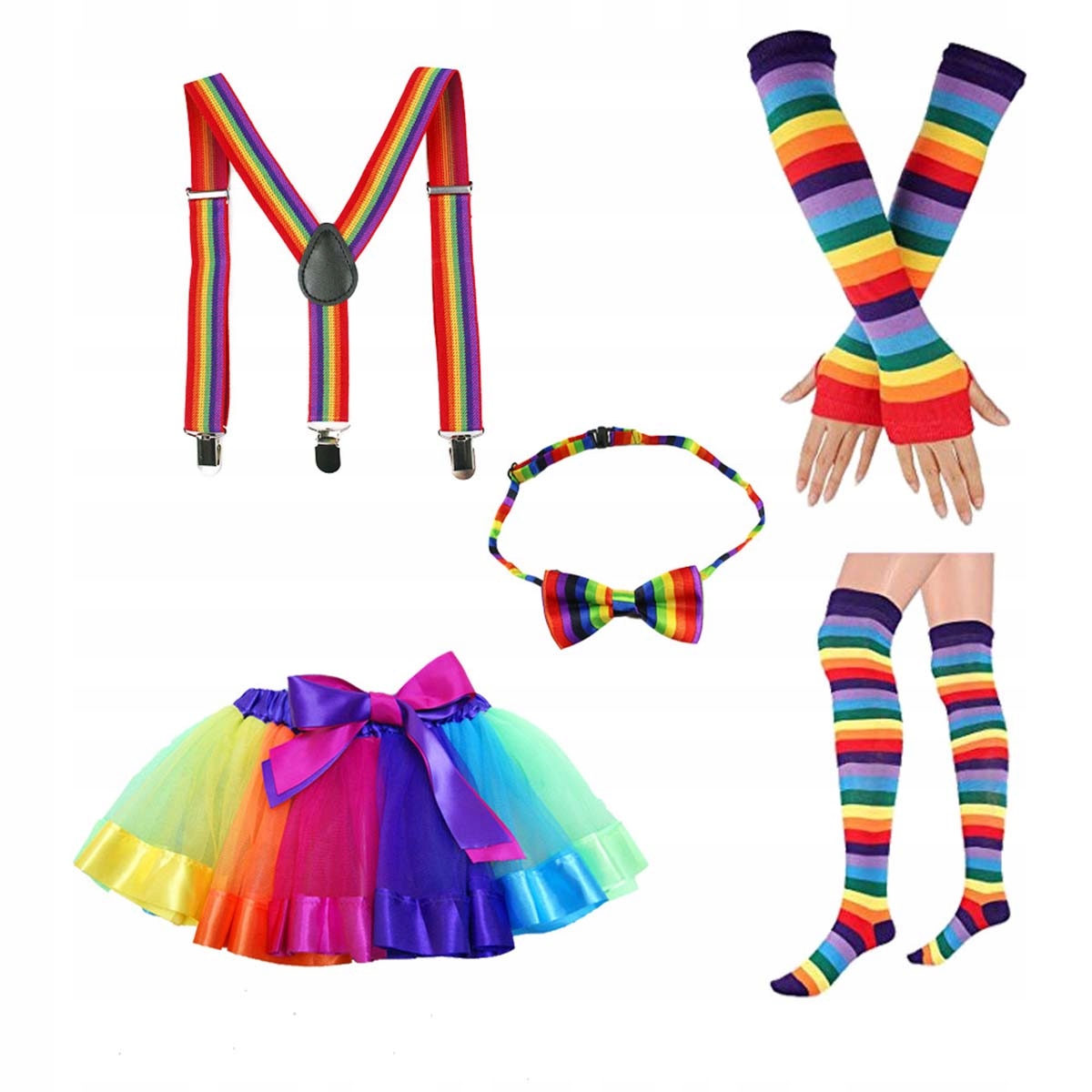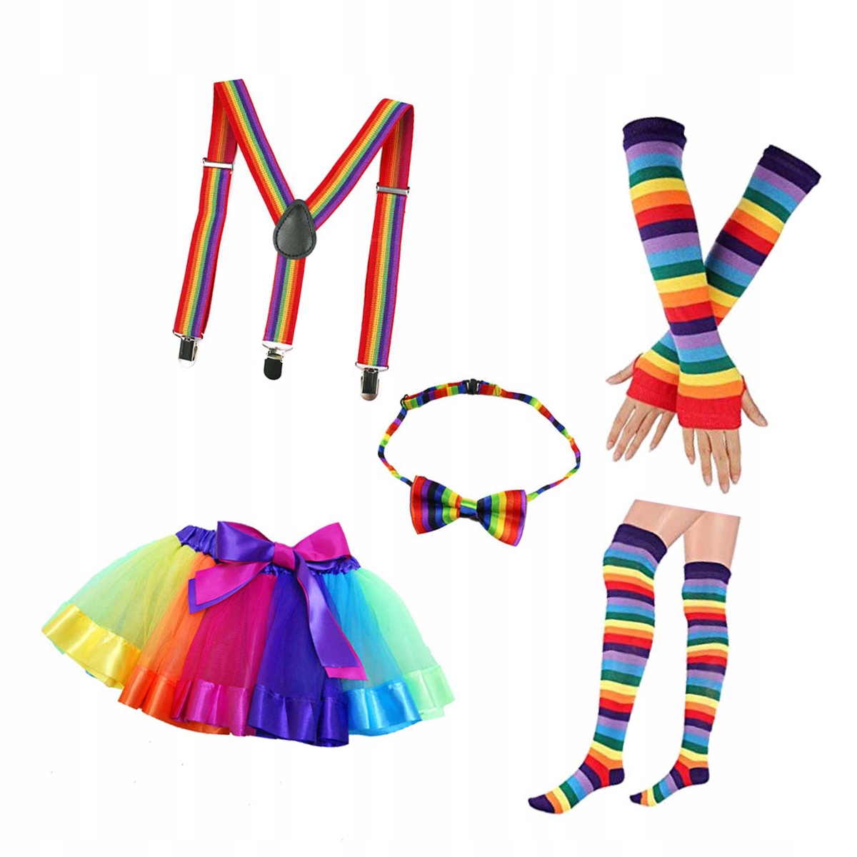 ✅ Шукаєте особливий наряд для вечірки для себе чи своєї дівчини? Цей набір костюмів із райдужним малюнком задовольнить ваші потреби! До цього вбрання входять спідниця, краватка, підтяжки, рукавички та панчохи в красивому райдужному дизайні! Ідеальний святковий костюм на Хелловін, Різдво, Новий рік, день народження, карнавал тощо.