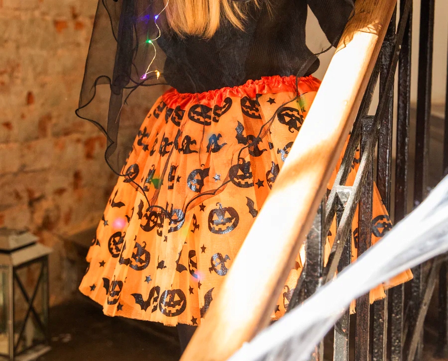 СПІДНИЦЯ-ПАЧКА НА Хеллоуїн, помаранчева, з гарбузами, 30 см, світлодіоди