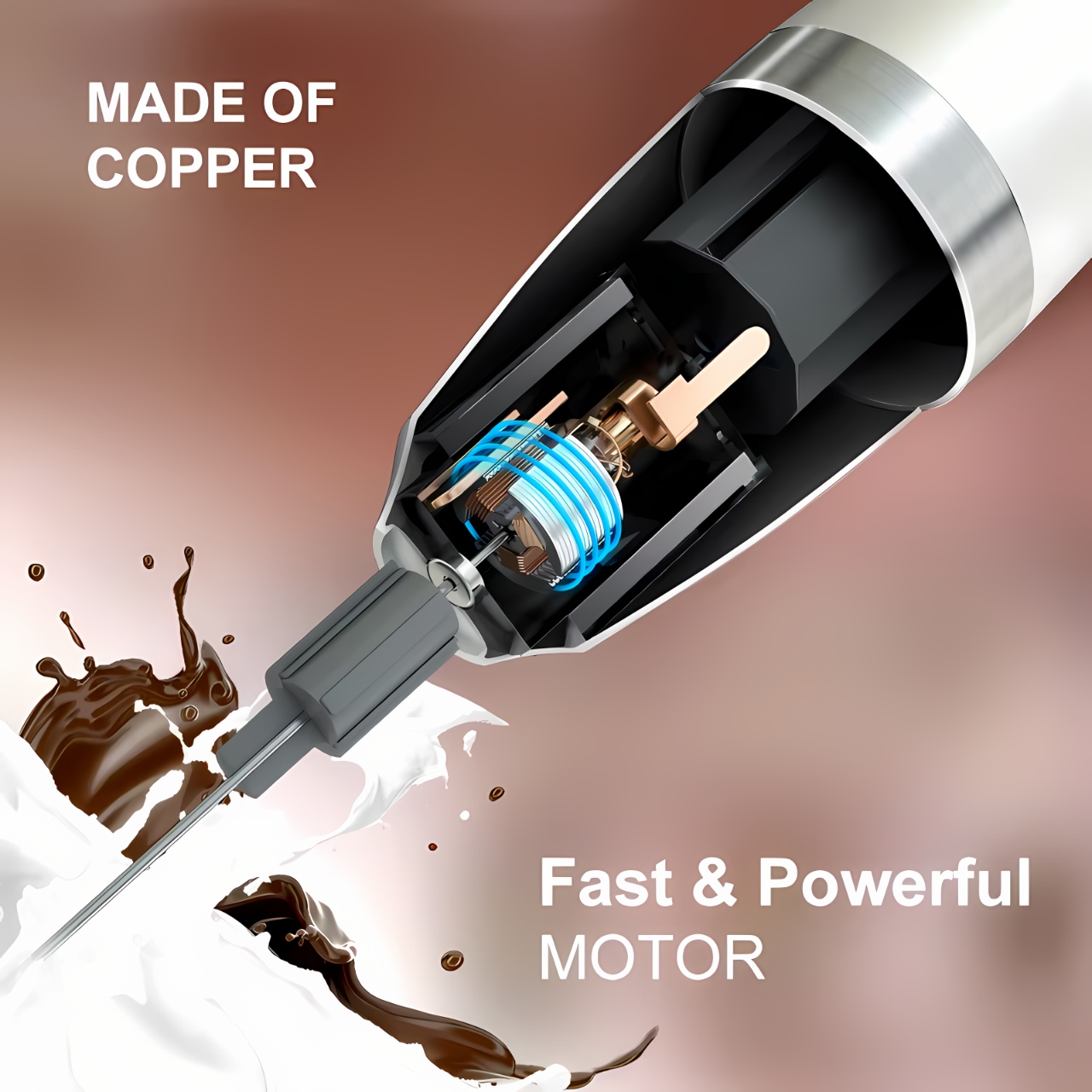 Він живиться від 3 батарейок типу ААА, тому вам не доведеться турбуватися про дроти та підключення до розетки. Завдяки високій швидкості він може виробляти вершкову молочну піну для латте, капучіно, маккіато або гарячого шоколаду за 15-20 секунд.