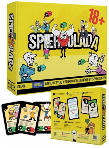 Spie*dolada — це унікальна карткова гра для дорослих, яка відображає реальне життя: боротьбу зі своїми фігнями. Перемагає той, хто першим їх переможе! Ви починаєте гру, отримуючи 3 F*cks up, і ваше завдання атакувати людей і позбавлятися від них. Читайте картки подій, смійтеся над текстами Zwyrol, виконуйте інструкції та нагороджуйте жетонами. Зелені функції рятують вашу дупу та змушують позбутися непотрібних карток, червоні лише роблять вас нещасними та змушують програвати ще більше.