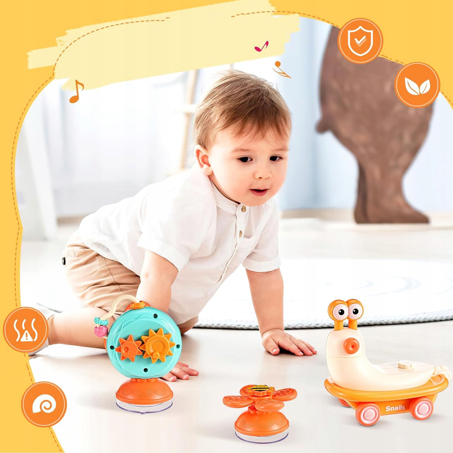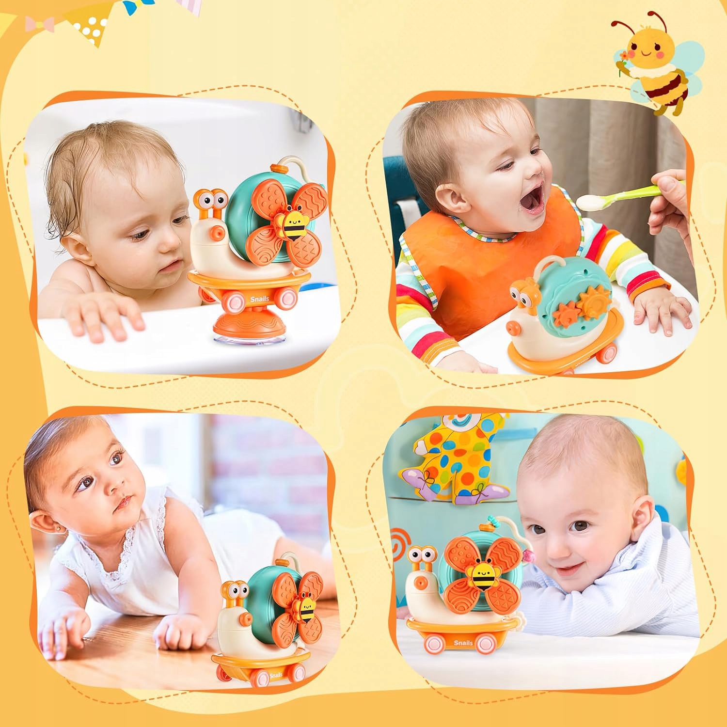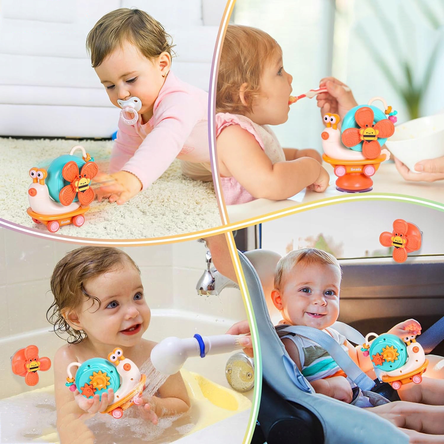 🎉🎉 [Багатофункціональні іграшки Монтессорі] - іграшки з присосками з різними текстурами, іграшка машина Push and Go, обертові шестерні та ковзаючі кульки; голову равлика можна обертати, а деталі можна легко та вільно збирати!
