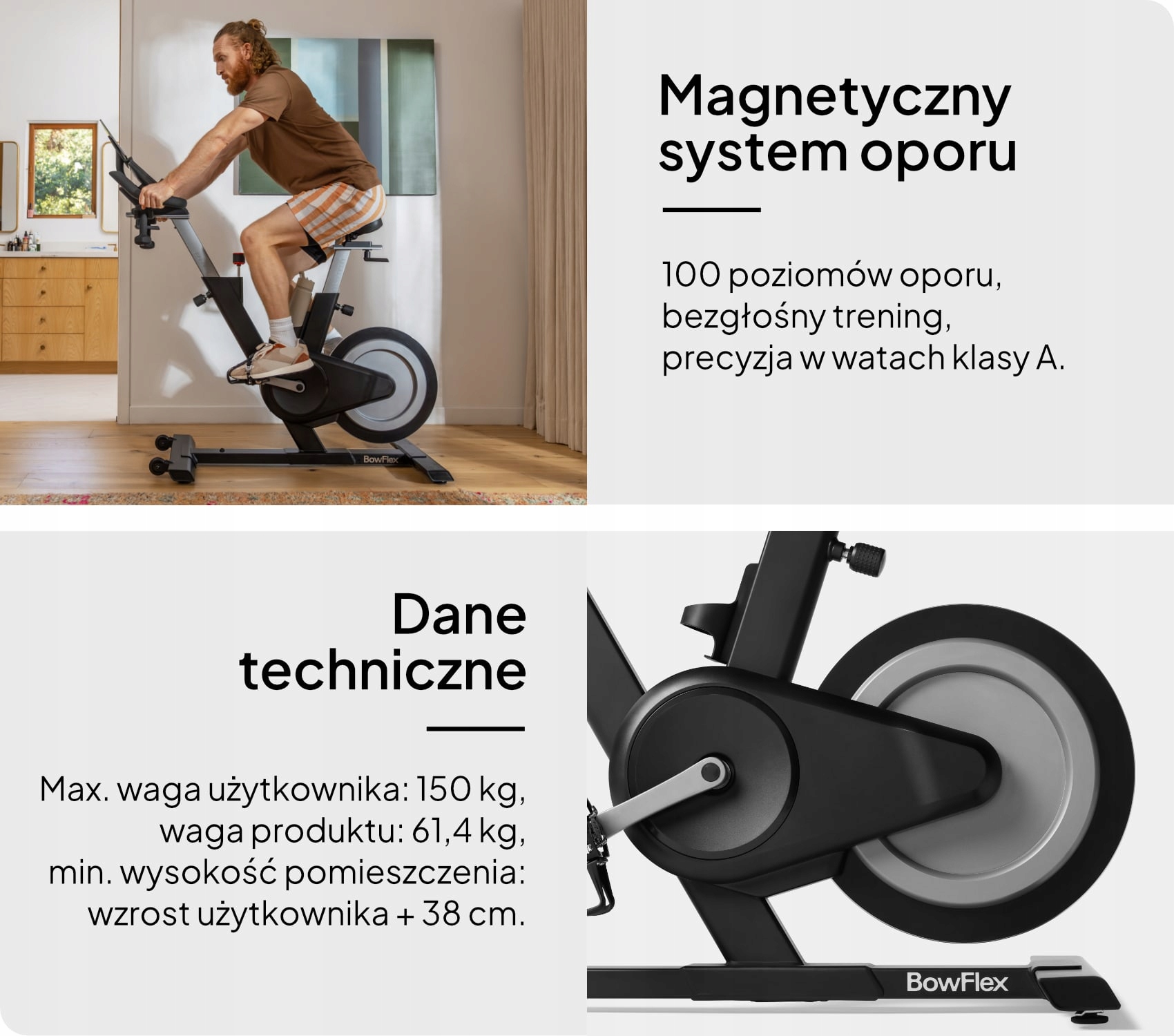 Відкрийте для себе передовий спінінговий велосипед BowFlex IC SEi. Це ідеальне рішення для тих, хто шукає ефективні інтерактивні кардіотренування в комфорті власного дому. Цей сучасний спінінг-байк поєднує високу якість виготовлення з новітніми технологіями, забезпечуючи тренування на рівні, близькому до справжнього велоспорту.