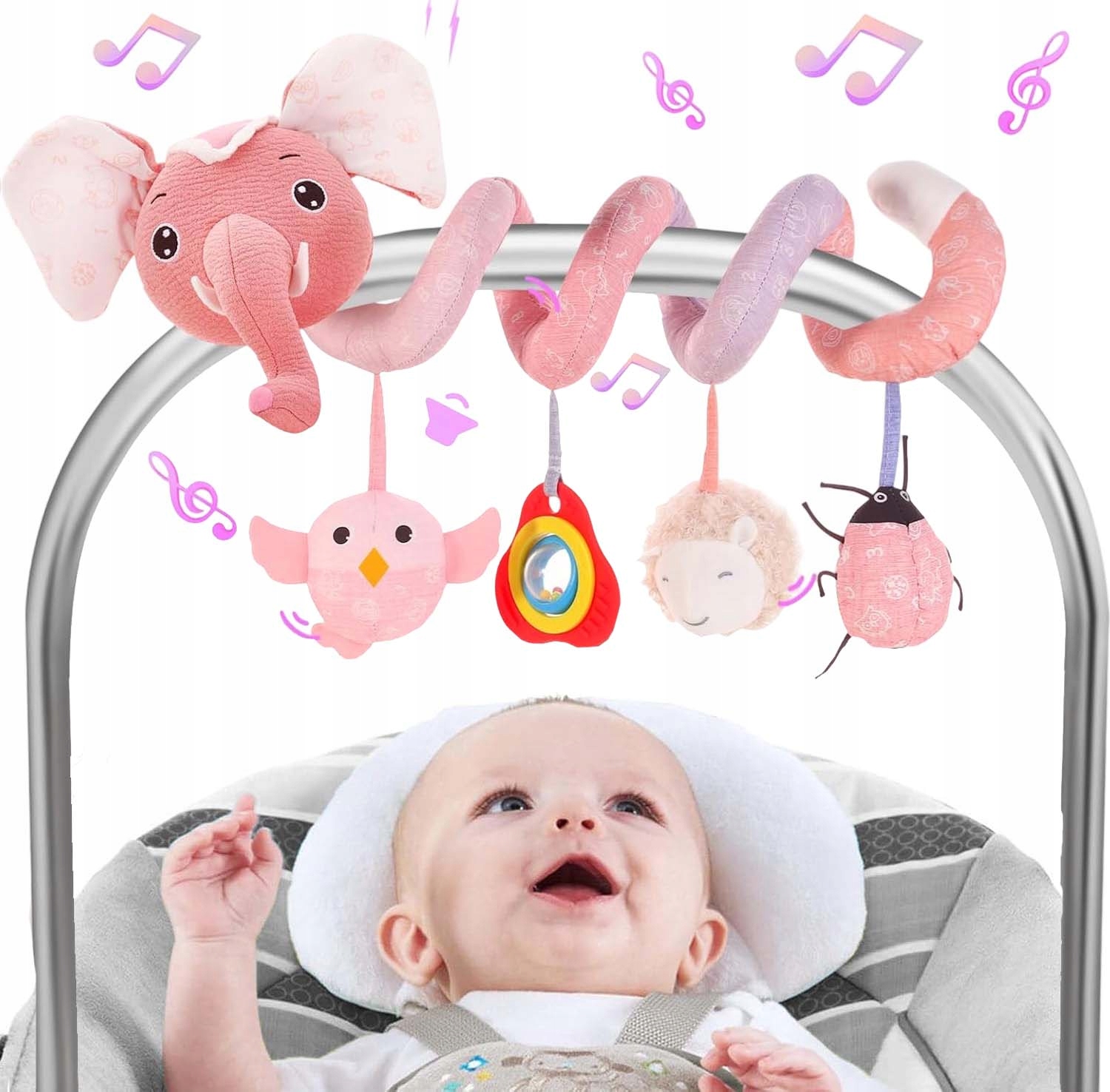 🐘🐘ІГРАШКА У ФОРМІ АВТОКРІСЛА ДЛЯ ДИТЯЧІВ, СПІРАЛЬНА, ПЛЮШЕВА, ПІДВІСНА, ДЛЯ КОЛЯСКИ, ЛІЖЕЧКА, З МУЗИЧНОЮ ШКАТУЛКОЮ, БРІСКАЛКОМ І БРЯСКАЛЬЦЯМИ (РОЖЕВІ СЛОН)🐘🐘