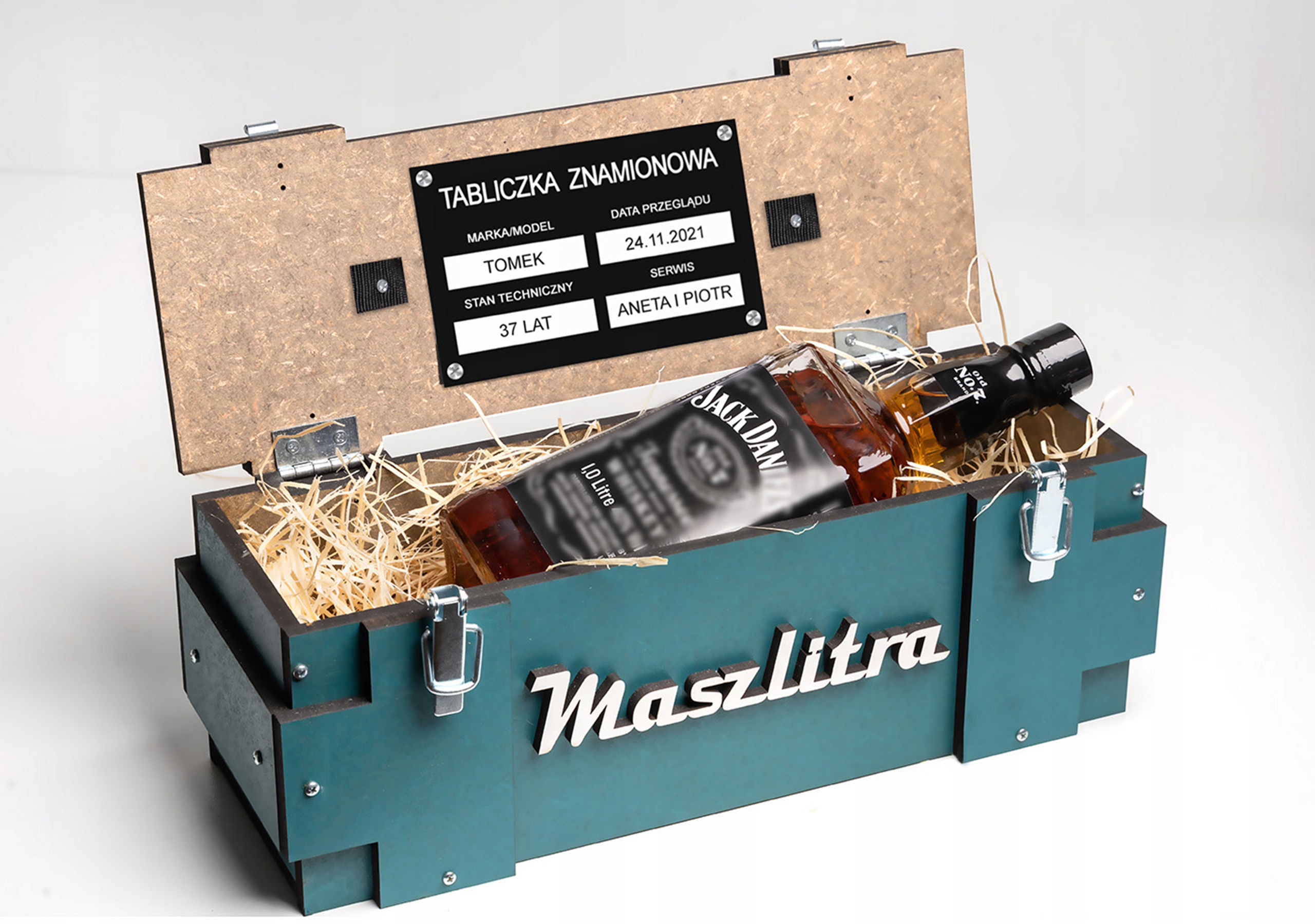 Коробка водночас є ідеальним подарунком на день подія, а потім протягом тривалого часу прикраса для кожної чоловічої кімнати, майстерні чи домашнього бару або унікальнаскринька для інструментів.