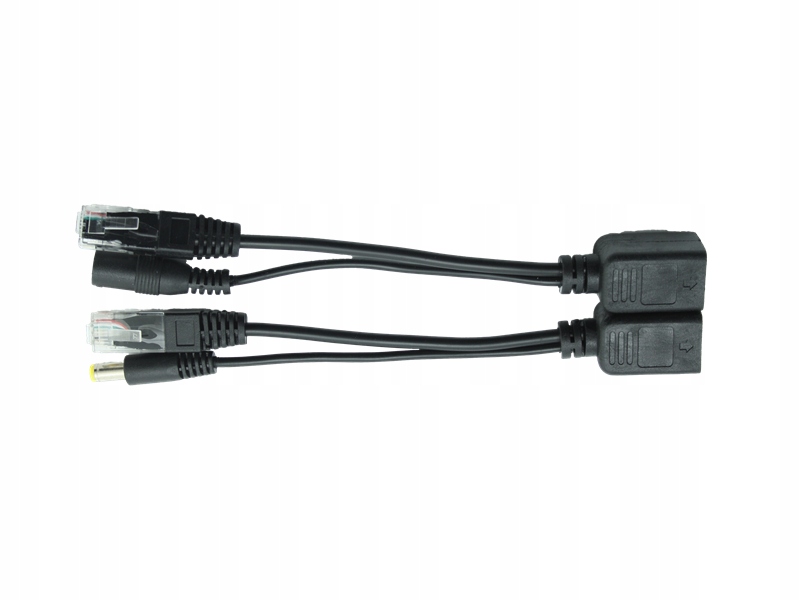 Сплітер передає дані лише на виході (роз’єм RJ-45), тоді як напруга живлення 12 В постійного струму для камери чи іншого пристрою доступна на роз’ємі постійного струму.