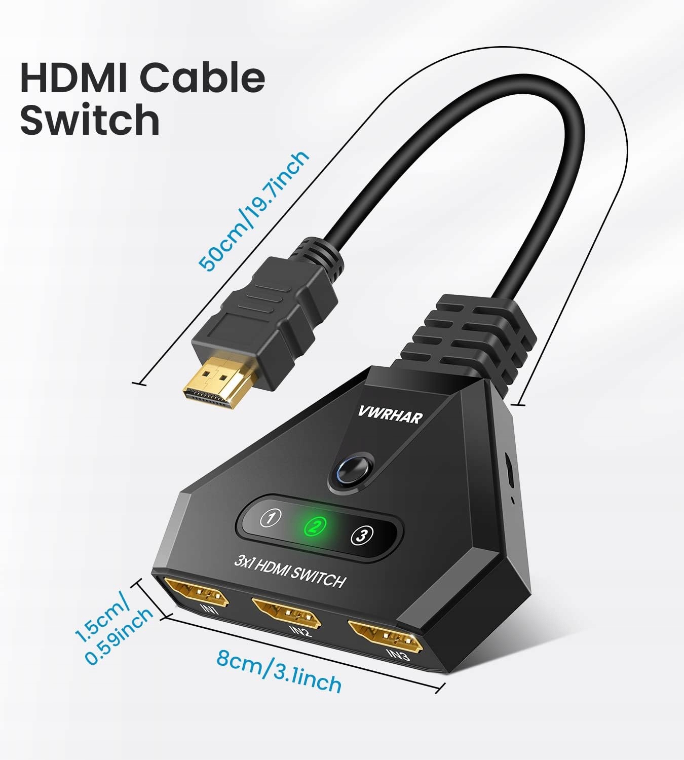 - 3-портовий перемикач HDMI: цей перемикач HDMI 3-в-1 дозволяє підключати 3 пристрої HDMI (ігрові консолі, телевізор, DVD-програвач тощо) до 1 дисплея HDMI і перемикатися між ними. Звільняє вас від підключення та від’єднання кабелів HDMI. Жодної затримки, жодного зниження якості.