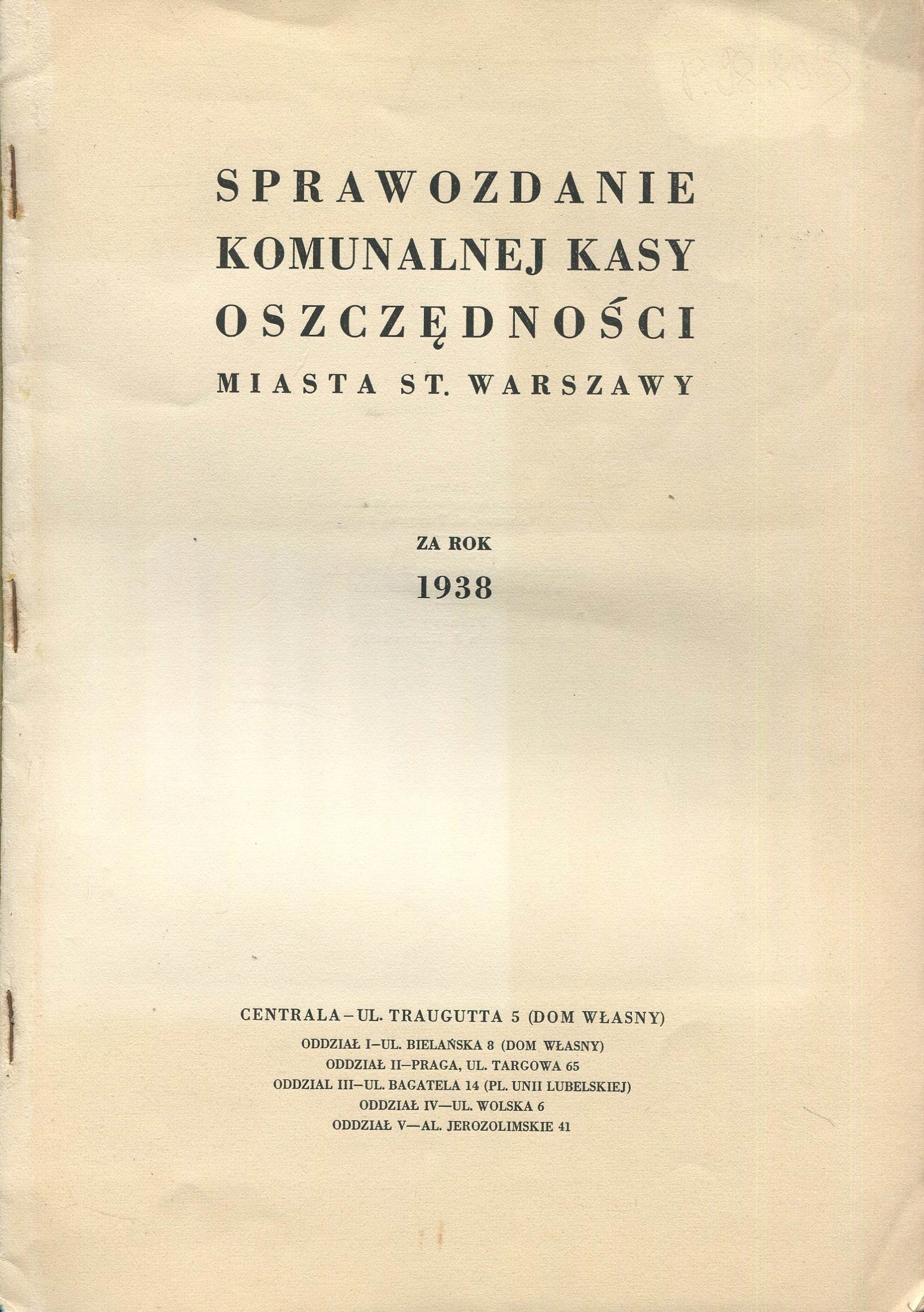 ЗВІТ МІСЬКОЇ ОЩАДНОЇ БАСИ МІСТА СВ. ВАРШАВА 1938 РОКУ
