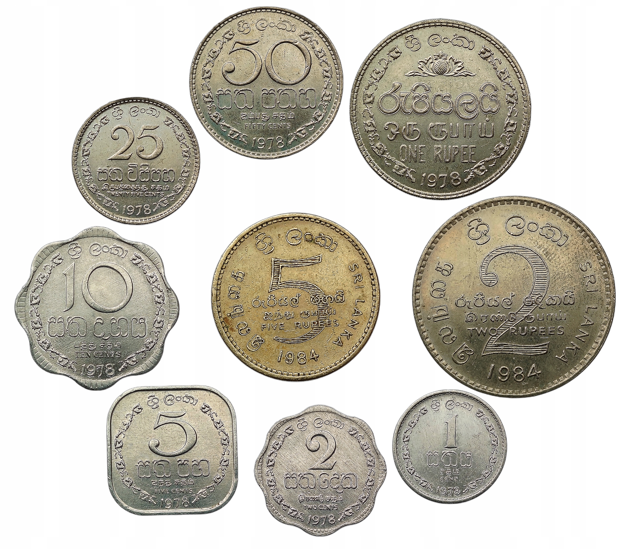 SRI LANKA НАБІР З 9 МОНЕТ 1 ЦЕНТ - 5 РУПІЙ 1978 - 1984 VF - XF