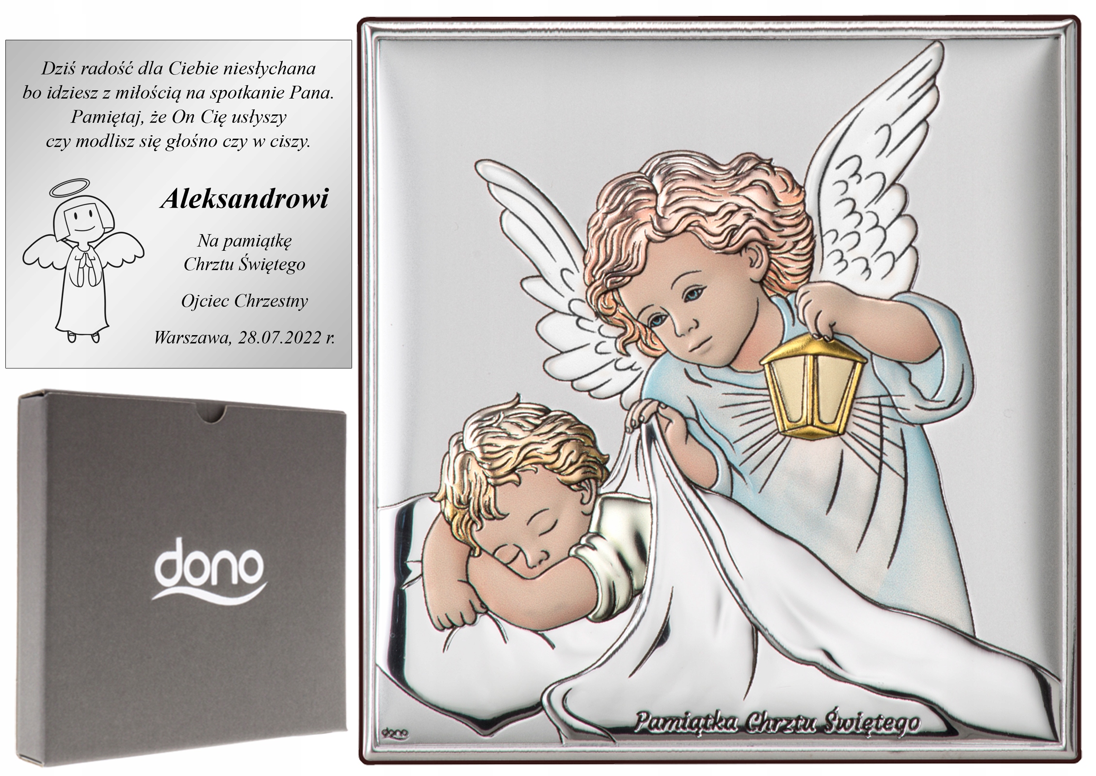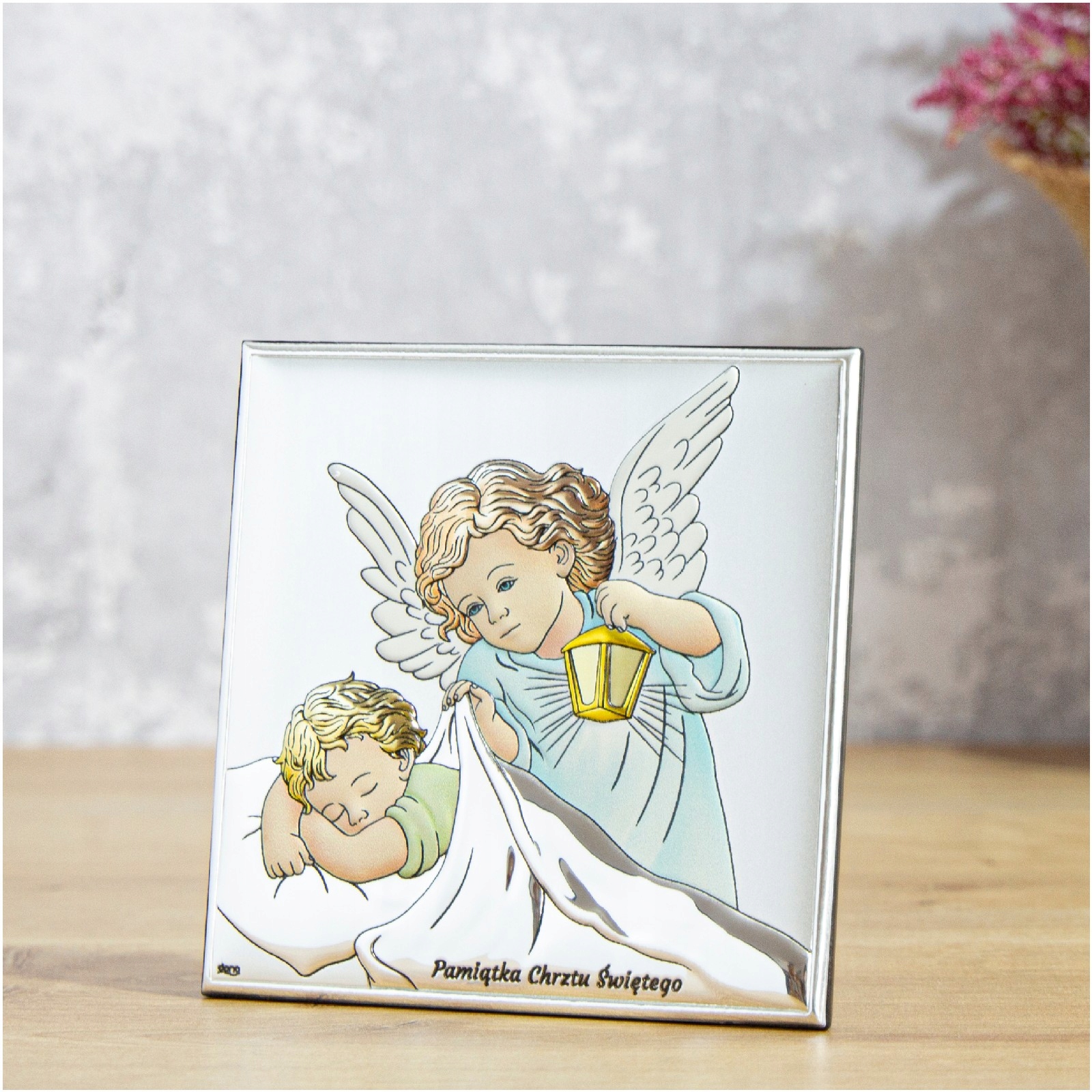 Картинка із зображенням Ангела-Хранителя з ліхтариком – ідеальний подарунок на Хрещення. Висока якість виготовлення, вишукана обробка, елегантна упаковка – все це створює унікальний сувенір на довгі роки... Картина також надзвичайно практична: вона має вставну підставку, тож ми можемо поставити її на шафу чи комод або повісити на стіні.