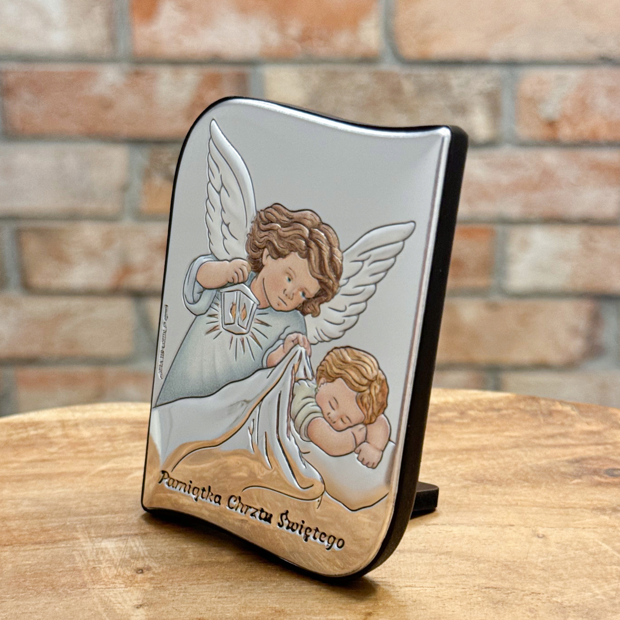 Картина із зображенням Ангела-охоронця - ідеальний подарунок на Святе Хрещення. Якісне виконання, вишукане оздоблення, елегантна упаковка – все це створює унікальний сувенір на довгі роки... Картина також надзвичайно практична: вона має вбудовану підставку, тому ми можемо поставити її на шафу чи комод. або повісьте на стіну.