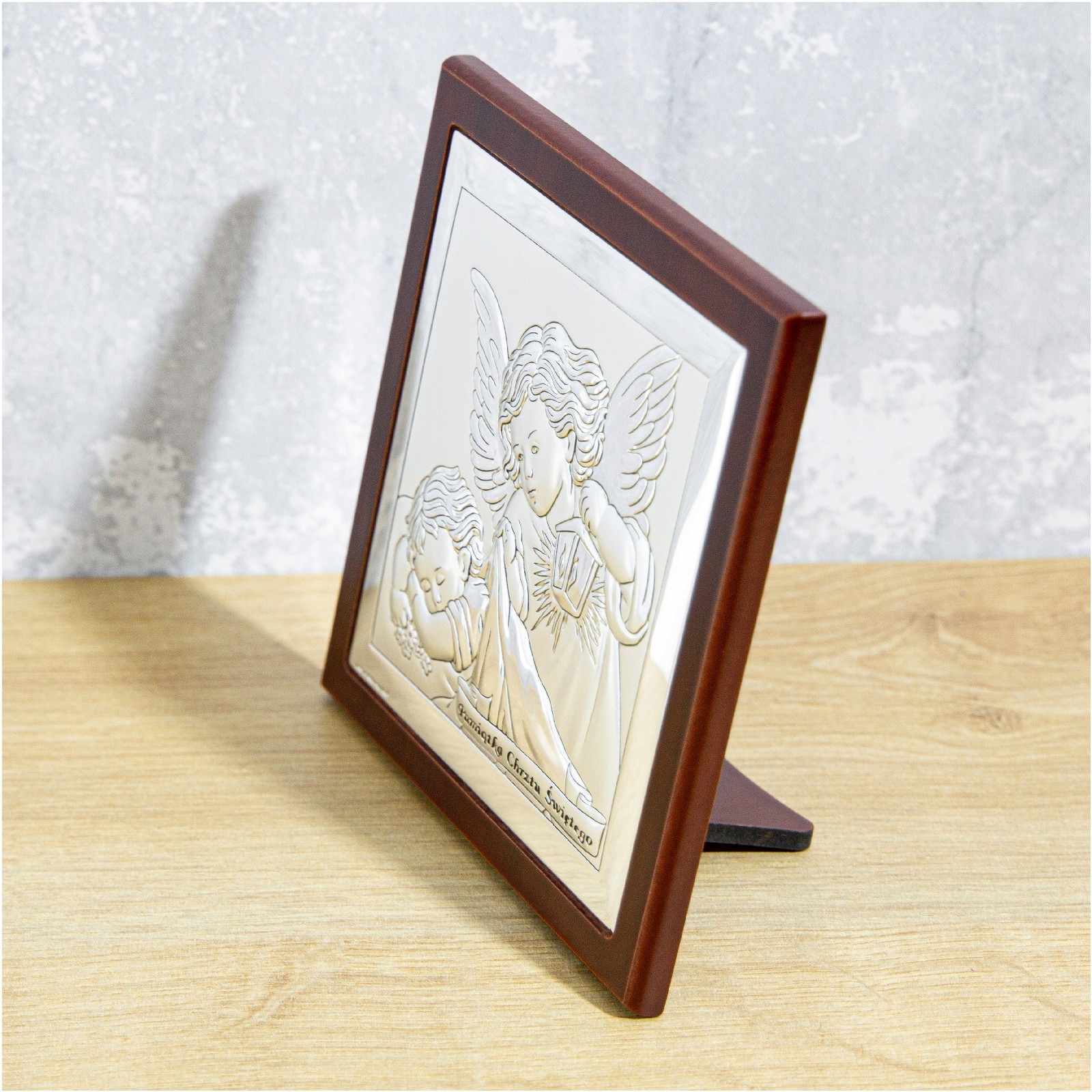 Картина із зображенням Ангела-охоронця з ліхтариком у коричневій рамці - ідеальний подарунок на Хрещення. Висока якість виготовлення, вишукана обробка, елегантна упаковка – все це створює унікальний сувенір на довгі роки... Картина також надзвичайно практична: вона має вставну підставку, тому ми можемо поставити її на шафу чи комод або повісити на стіні.