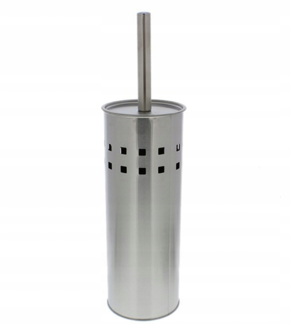 Туалетна щітка із закритим контейнером і ручкою, виготовлена з нержавіючої сталі.