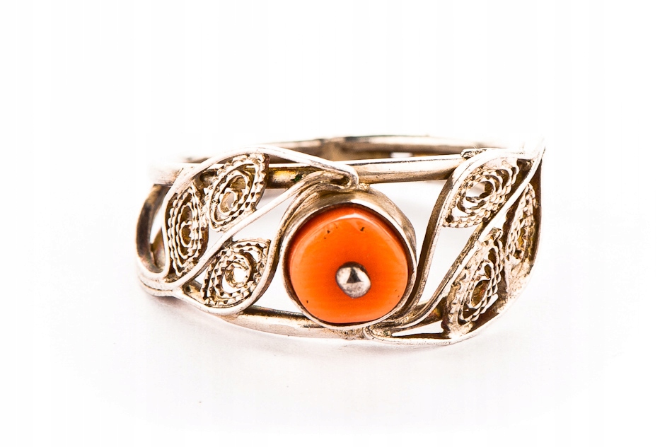 СРІБНИЙ ПЕРСТЕНЬ З КОРАЛОМ З КРАКІВСЬКОГО ЗОЛОТОГО КООПЕРАТИВУ "IMAGO ARTIS", ЯКОГО НЕ ІСНУЄ РОКІВ