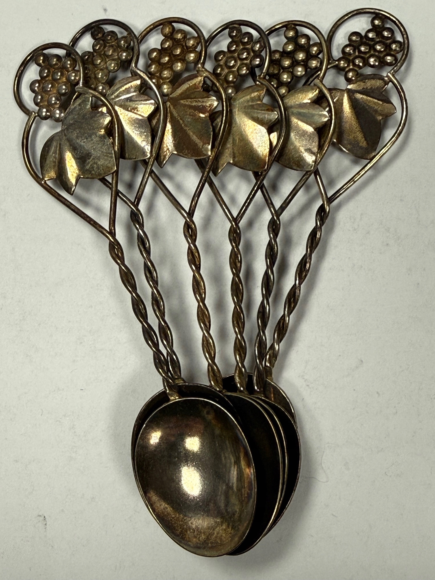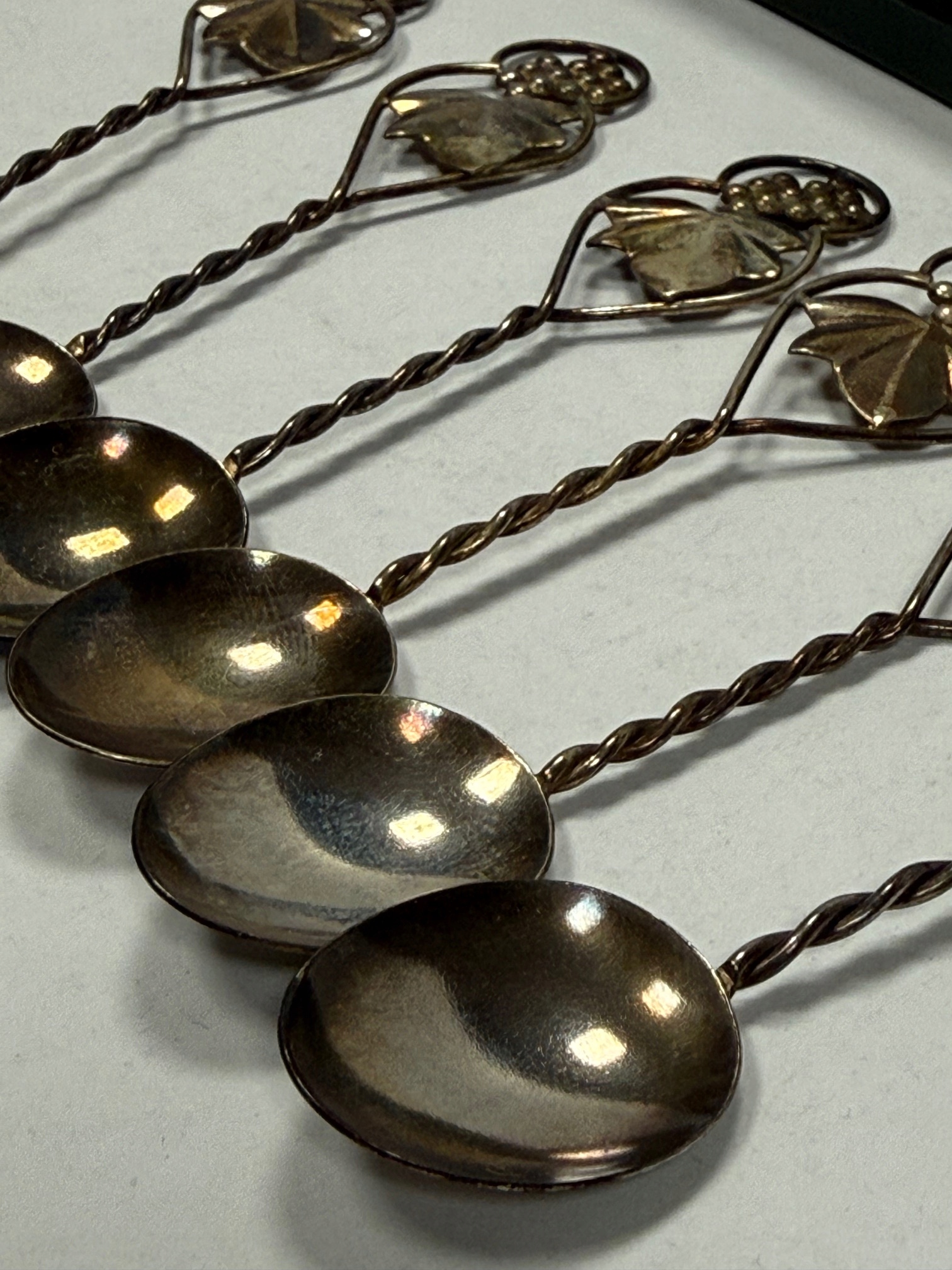 Набір 6 срібних ложок 1960-х років. Оригінальний стан - не використовувався, вкритий оригінальною плямою тих часів.
