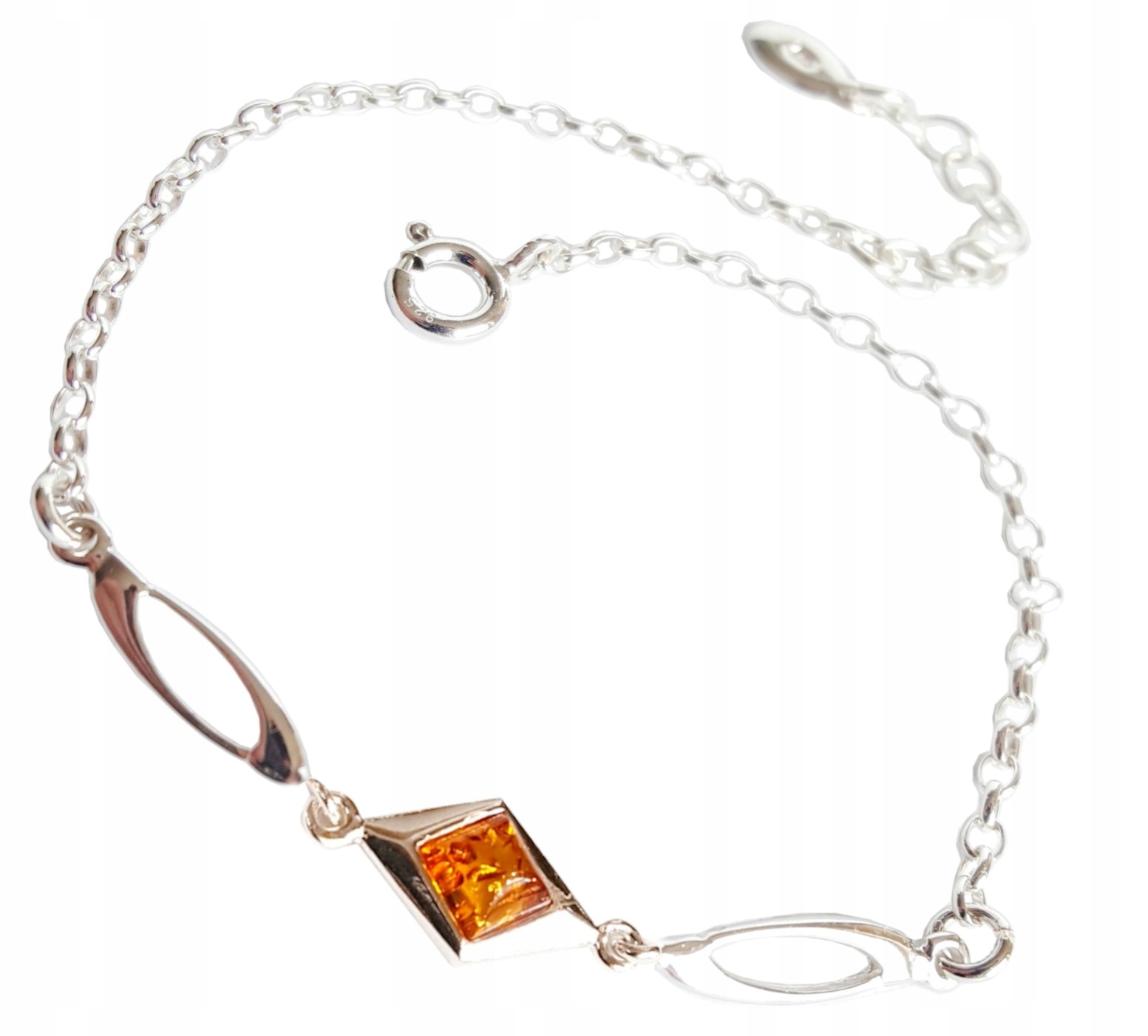 СРІБЛИНИЙ БРАСЛЕТ з натуральним БУРШТИНОМ
