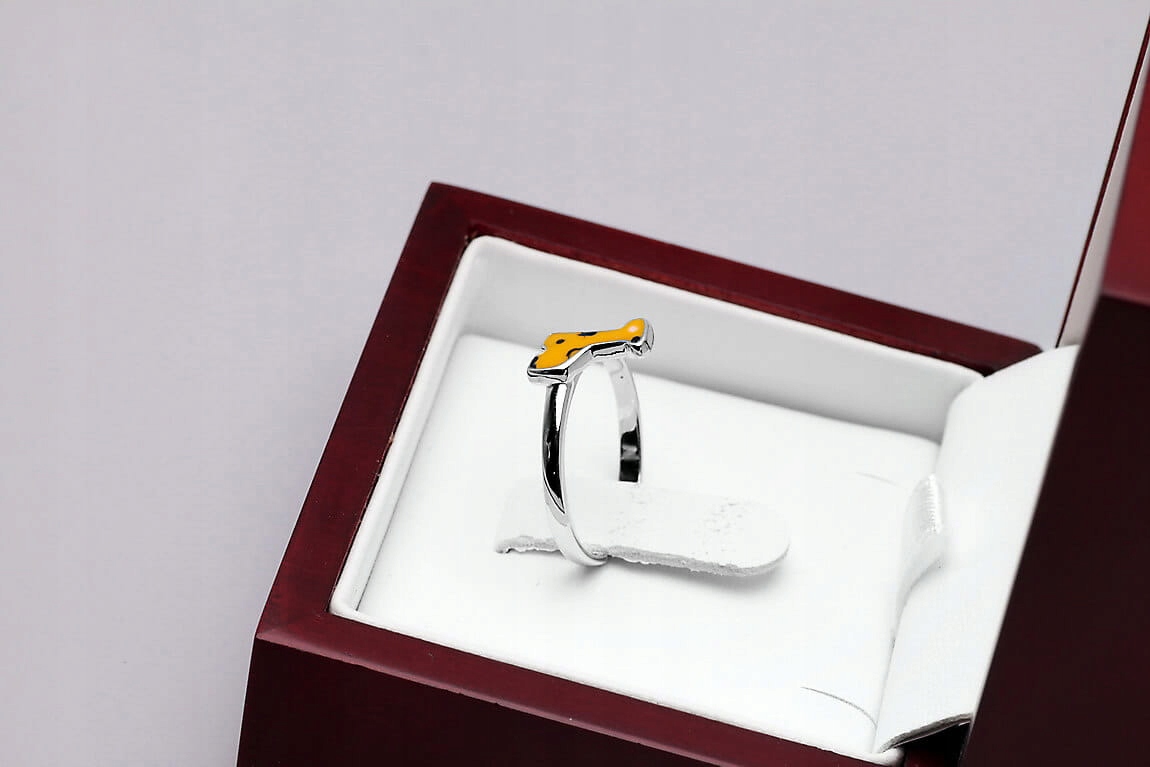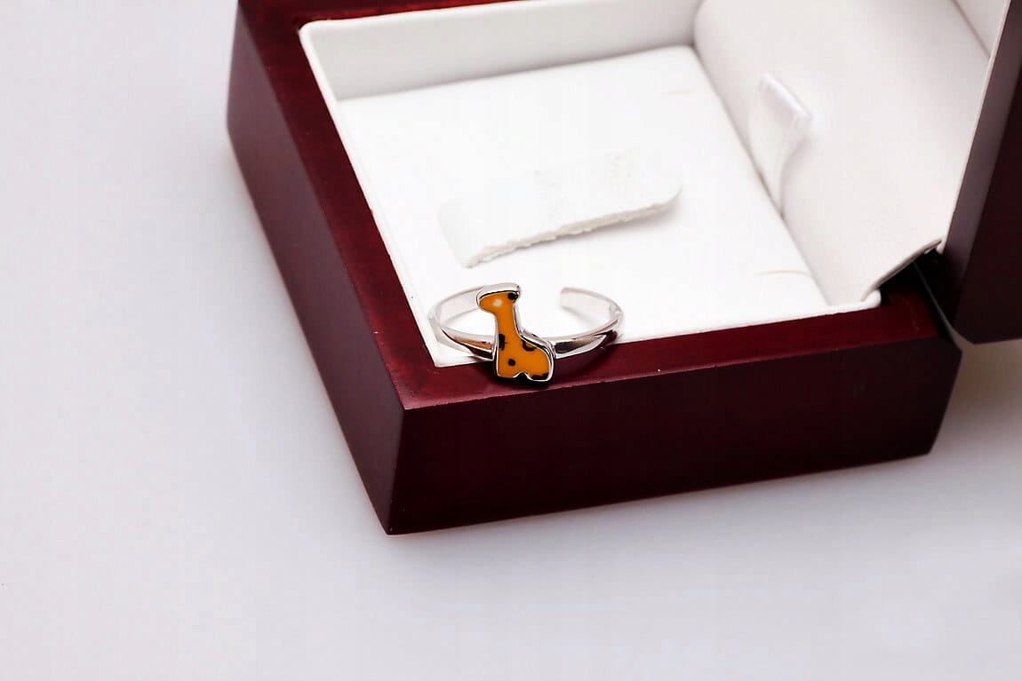 Чарівна, ніжна каблучка, повністю виготовлена зі срібла 925 проби та кольорової емалі у формі жирафа.