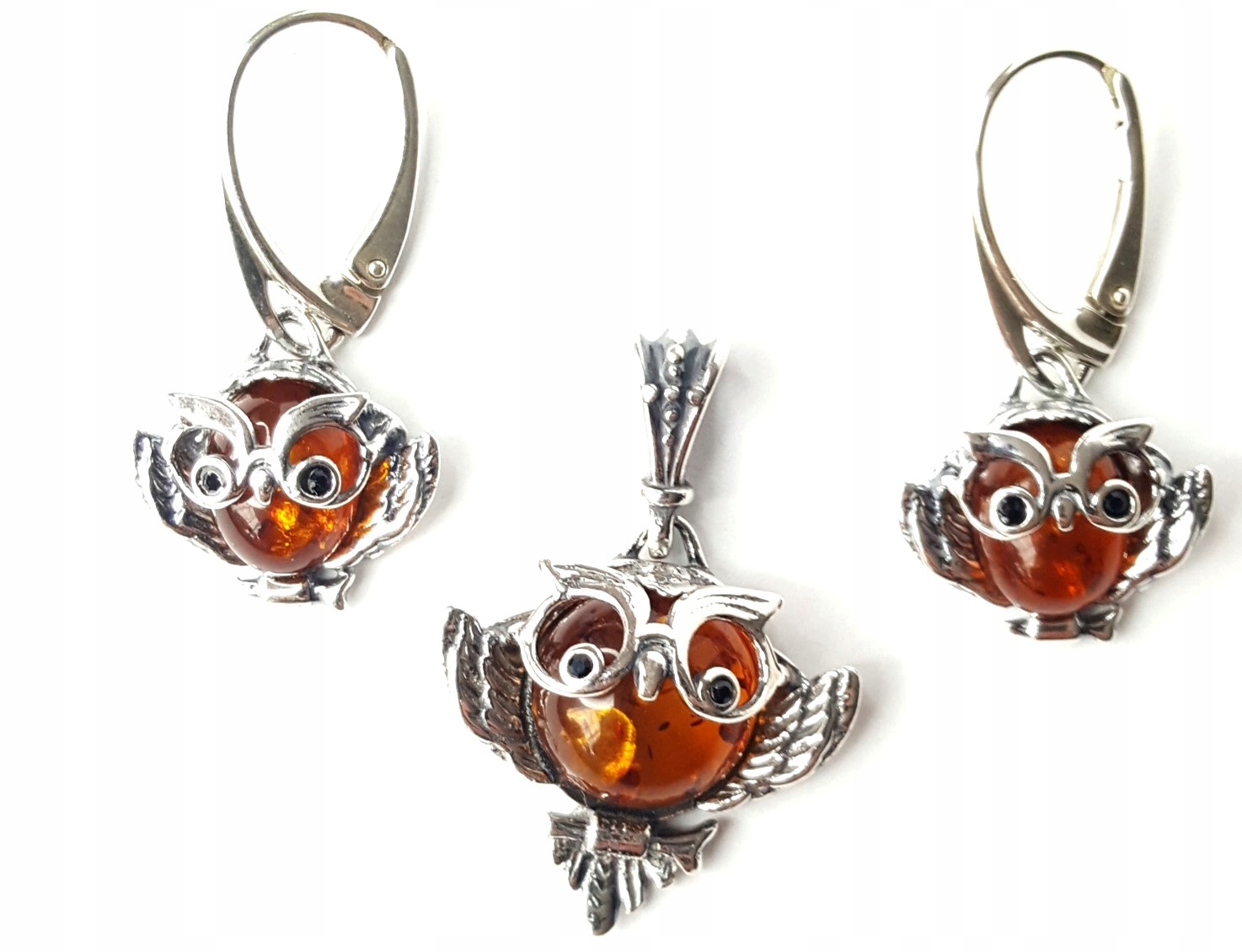 Срібний КУЛОН СОВА з БУРШТИНОМ для ланцюжка в ПОДАРУНОК