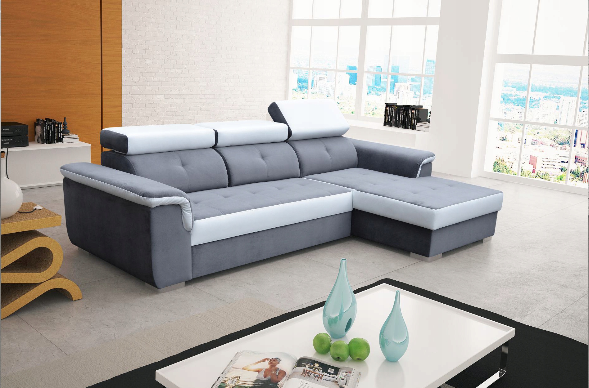 Красивий кутовий диван з регульованими підголівниками та функцією сну.