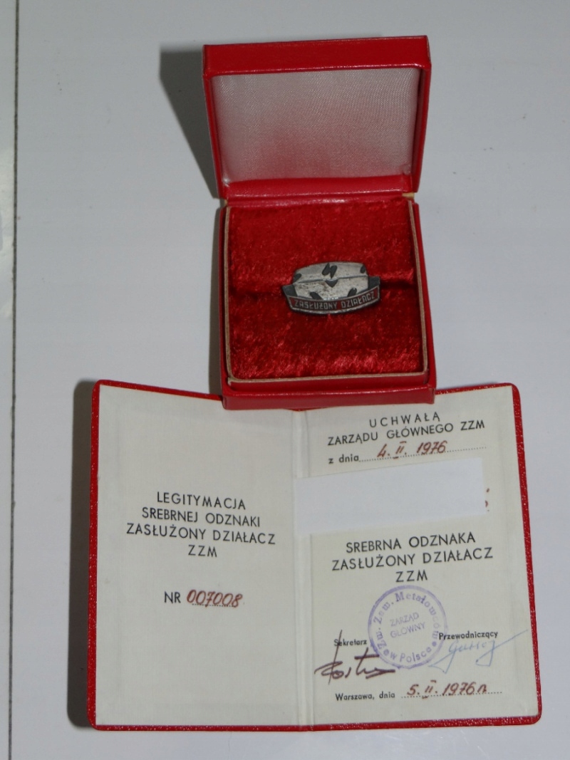 СРІБНИЙ ЗНАЧОК СПОРЧЕНОГО АКТИВІСТА ЗЗМ + посвідчення 1976р
