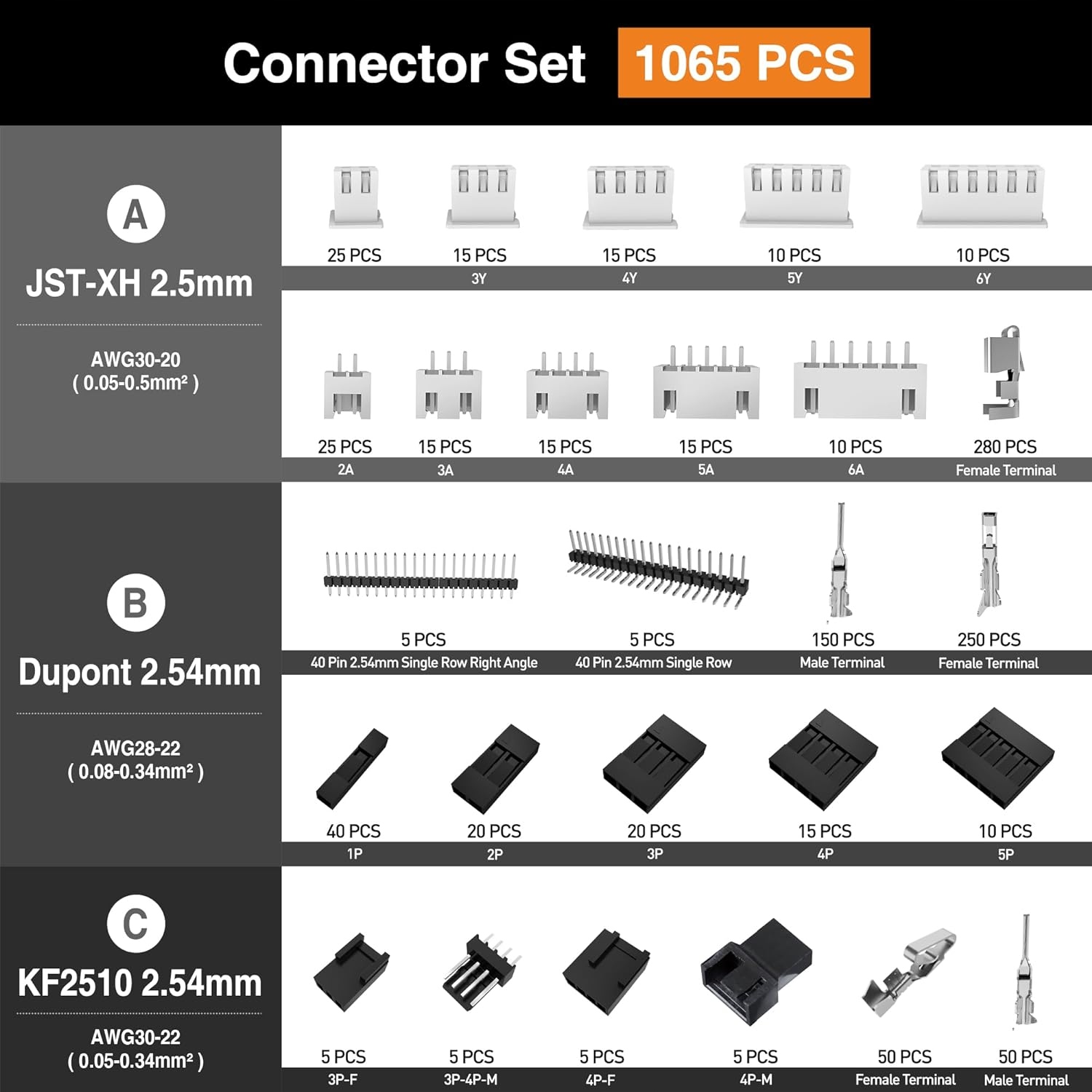 Набір з’єднувачів Dupont 26 стилів + обжимні шпильки 2,54 мм + набір з’єднувачів JST-XH + кліщі для обтискання +інструмент для зняття ізоляції. Ідеально підходить для ручних саморобок, пристроїв для 3D-друку, обслуговування побутових електричних і електронних компонентів тощо. Це найкращий вибір для любителів і професійних майстрів