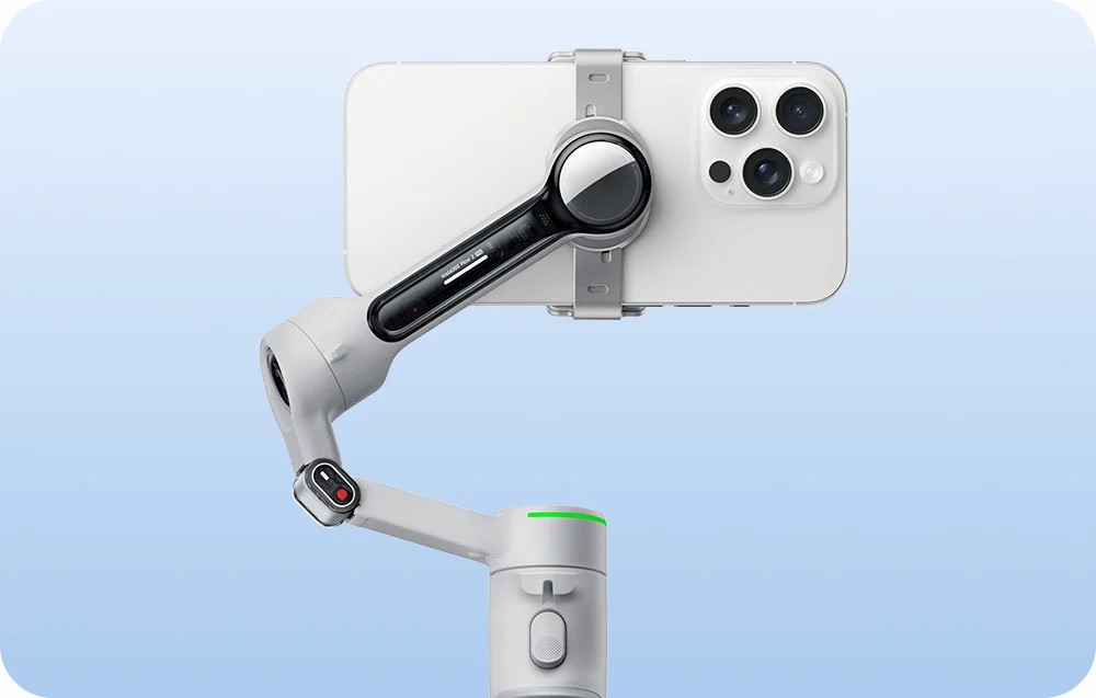 Flow 2 Pro завжди готовий, коли ви. Просто встановіть телефон і розгорніть стабілізатори. Він забезпечує інтуїтивно зрозуміле керування, тож ви можете зосередитися на створенні замість складних налаштувань. Легко змінюйте режими запису за допомогою кнопки M або використовуйте спеціальну кнопку C-Mode, щоб одним клацанням викликати бажаний ефект. Повертаючи SmartWheel, ви можете точно збільшувати або зменшувати зображення, а функція швидкого попереднього перегляду дозволить вам негайно відтворити останній знімок. Завдяки функції One-Tap Pairing процес з'єднання зі смартфоном відбувається блискавично. Крім того, пристрій підтримує керування з Apple Watch, що дозволяє зручно записувати навіть на відстані.