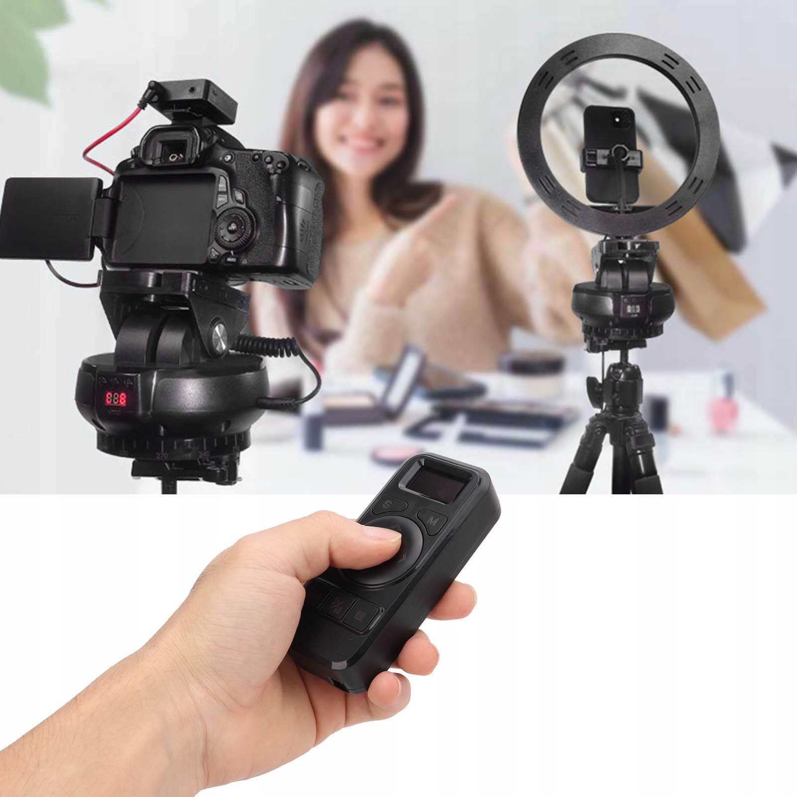 Функція: 1. Панорамне обертання та кут нахилу: підтримує бездротове горизонтальне обертання на 360°, нахил ±35°, швидкість можна регулювати на 9 передачах, підходить для творчої фотозйомки, відеоблогу тощо.