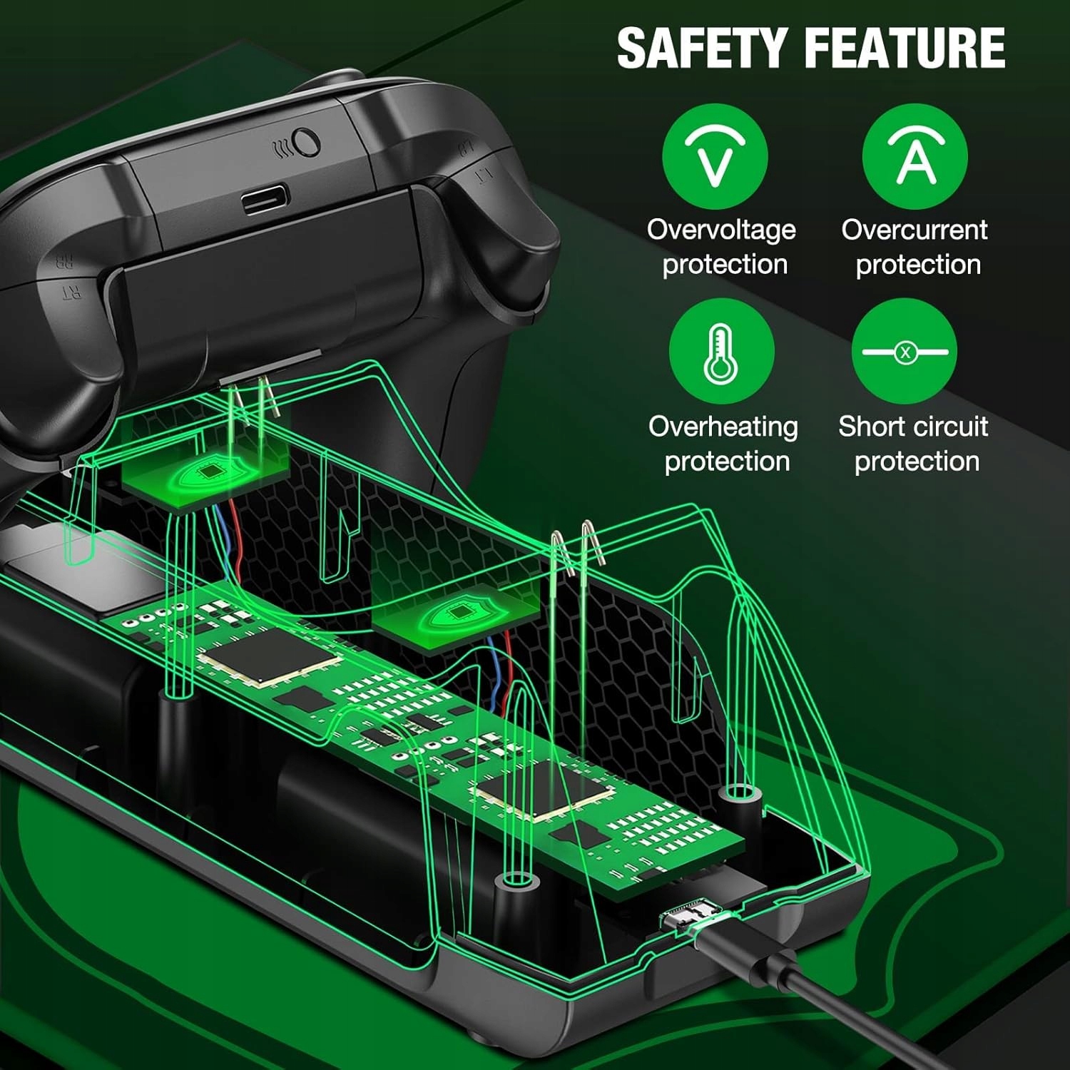 Stacja ładowania dla kontrolerów Xbox, 2 baterie 1800mAh i ładowarka
