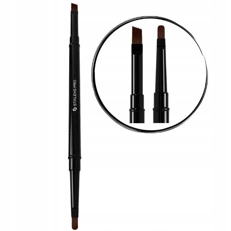 Staleks Pro Expert NBE-04/09 - це двостороння щітка, створена для максимальної точності та комфорту роботи. Він поєднує в собі овальний пензлик 7 мм для акуратного нанесення гелю навколо кутикули та кутовий пензлик 9 мм, який ідеально підходить для моделювання та роботи у важкодоступних місцях.