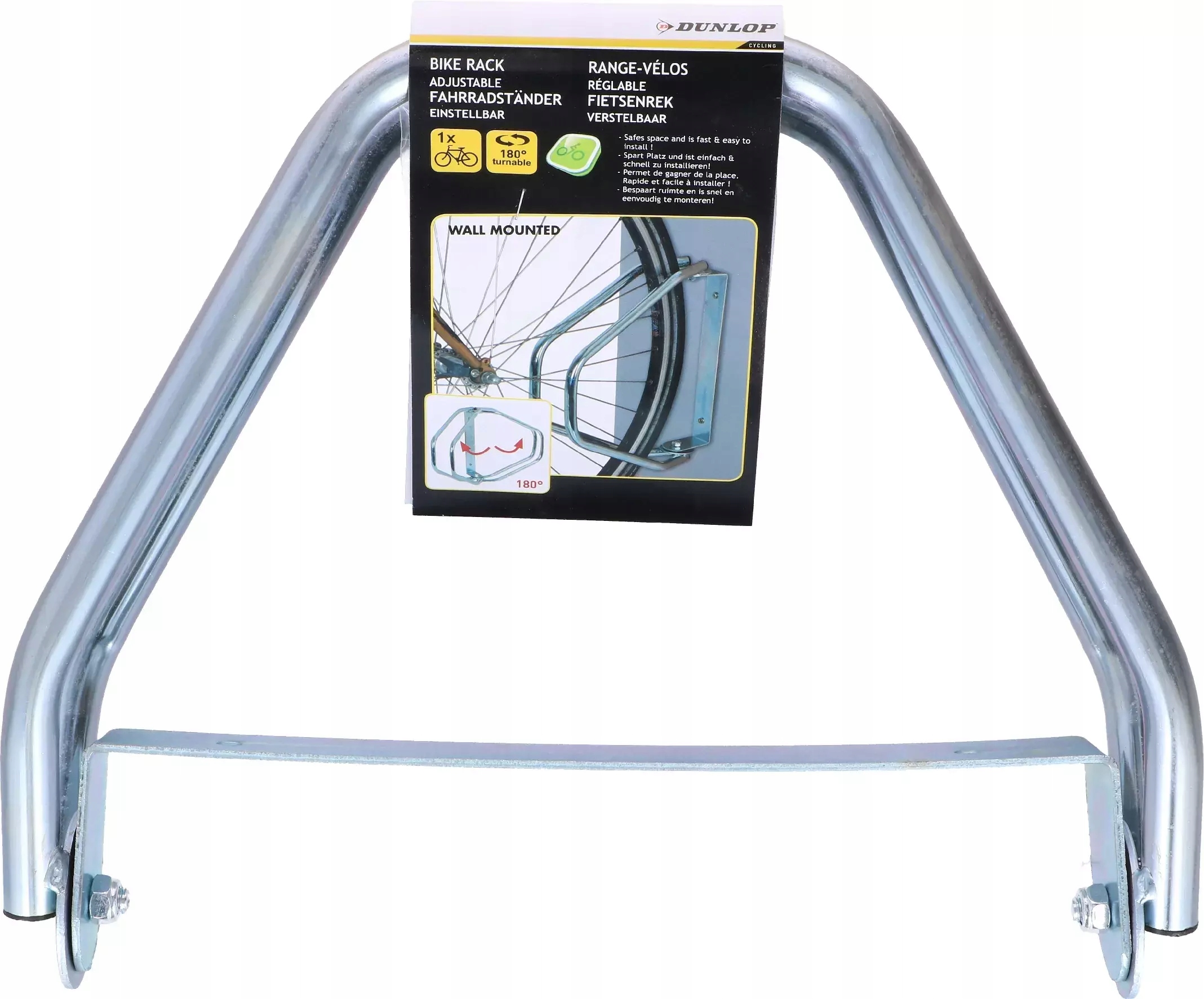 Велобагажник Dunlop виготовлений з високоякісної сталі. Виріб ідеально підходить як для гаражної, так і для зовнішньої установки. Оснащений регульованою рамою, яку можна повертати на 180 градусів.