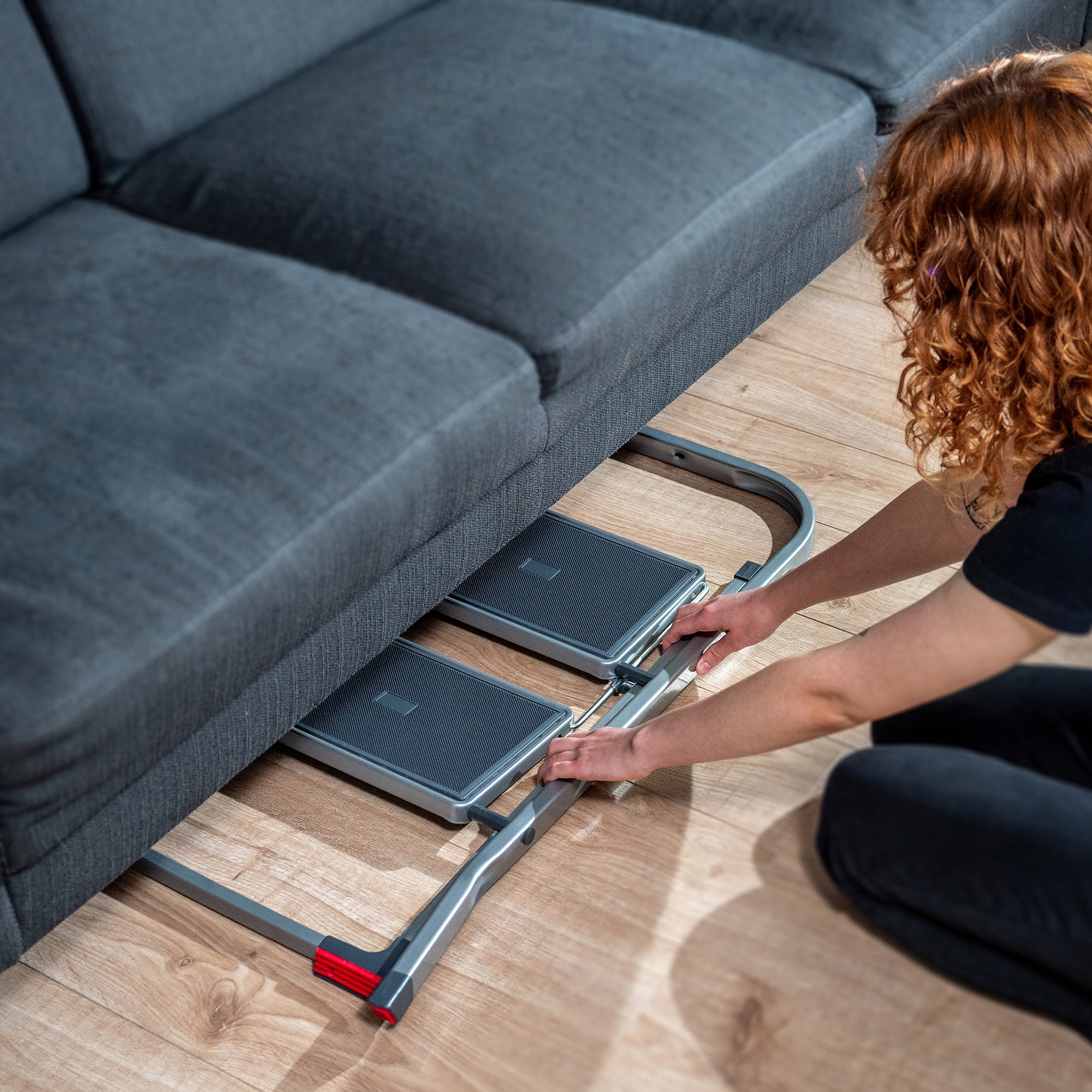 ✅ КОМПАКТНІСТЬ - після складання домашня драбина легко поміститься у вузькі щілини - за шафою, пральною машиною або під ліжком. Ви також можете зберігати його в багажнику автомобіля, гаражі або відділенні для інструментів.