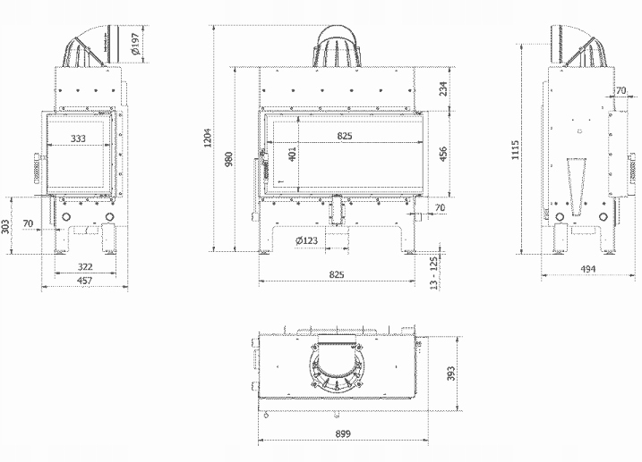 сталевий повітряний камін Floki L Правий BS 12 KW Ø 200