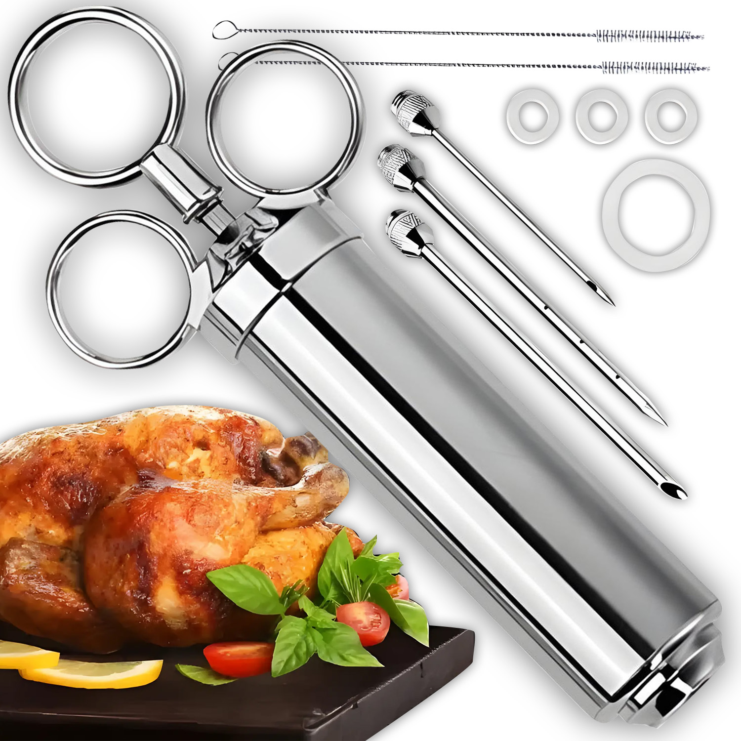 Наш інжектор забезпечує професійні результати на вашій кухні, дозволяючи вам впорскувати м’ясо розсолом, що пришвидшує процес приготування та робить ваше м’ясо соковитим, ароматним і свіжим довше.