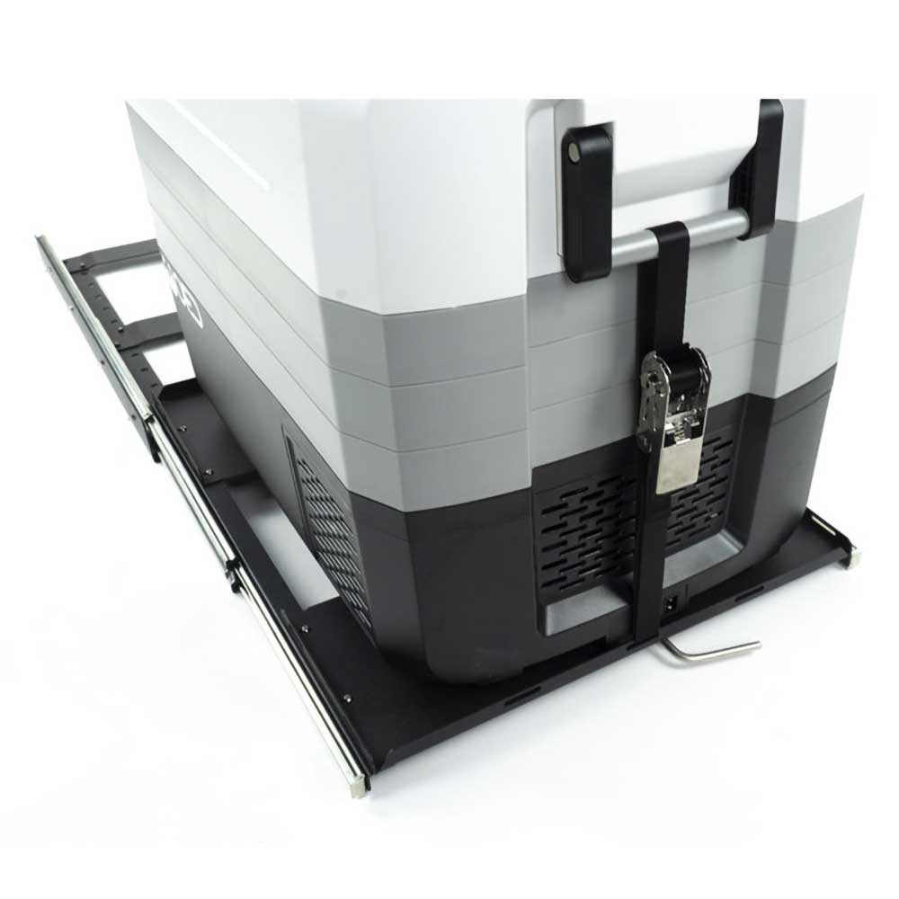 Сталевий телескопічний ящик від OFD маєбагато точок кріплення для ременів, що робить його сумісним з різними моделями холодильників. Міцні кулькові напрямні дозволяють зручно витягувати та отримувати доступ до вмісту холодильника. Виріб має гвинти з нержавіючої сталі та замки в трьох положеннях: повністю відкрито, закрито та посередині. Ящик дозволяє зручно використовувати холодильник і безпечно його транспортувати.