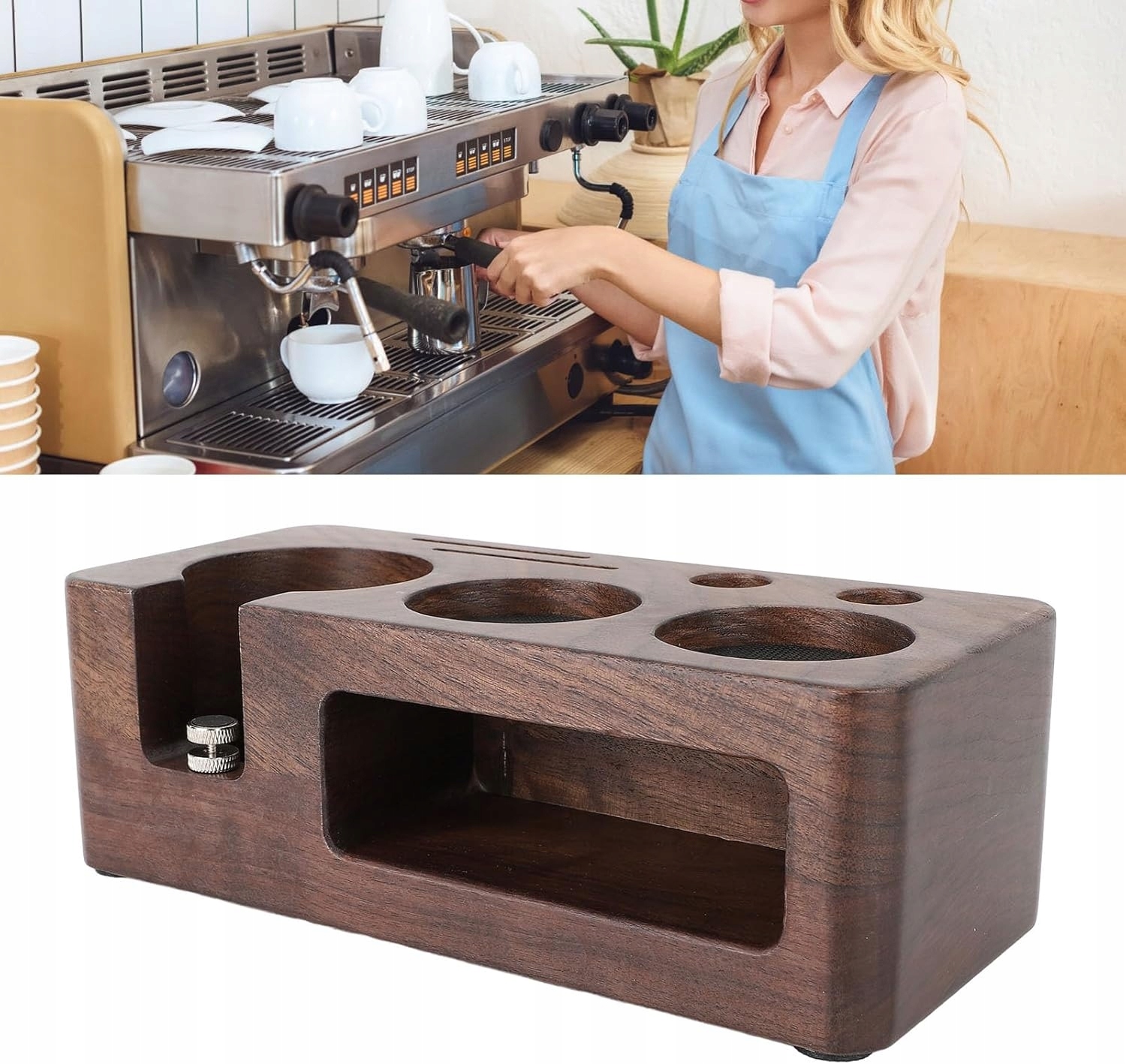 3. Сумісність із кількома кавовими машинами: ця дерев’яна станція для кави підходить для портафільтрів для кави різних розмірів, забезпечуючи широку сумісність.