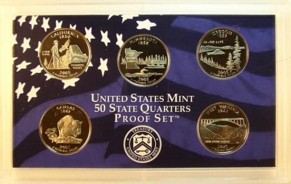 Stany USA - Zestaw Proof Set 2005 - 5 X 25 centów Mennica San Francisco