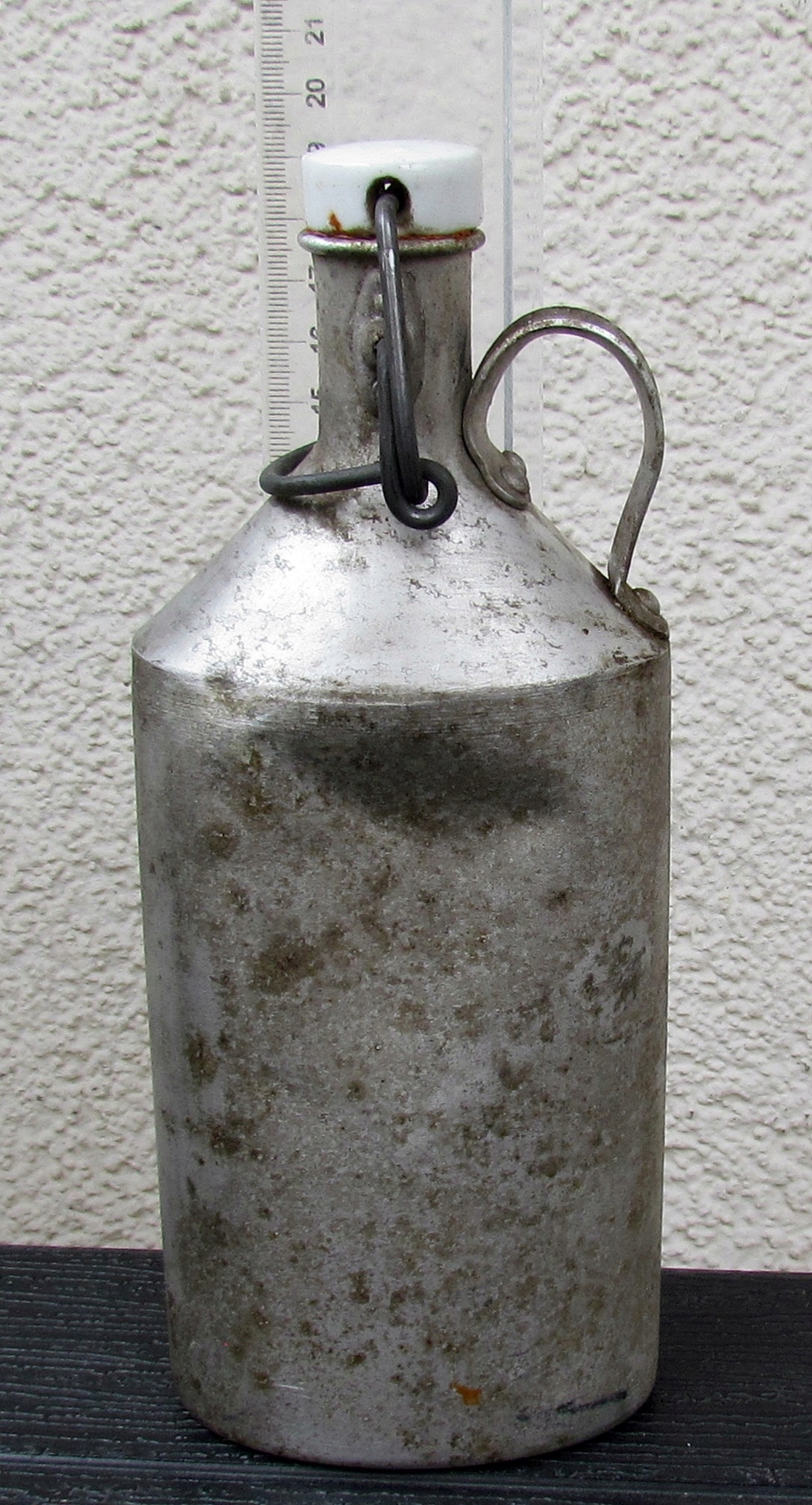 СТАРА АЛЮМІНІЄВА ПЛЯШКА З ПОРЦЕЛЯНОВОЮ ПРОБКОЮ - РІДКІСТЬ