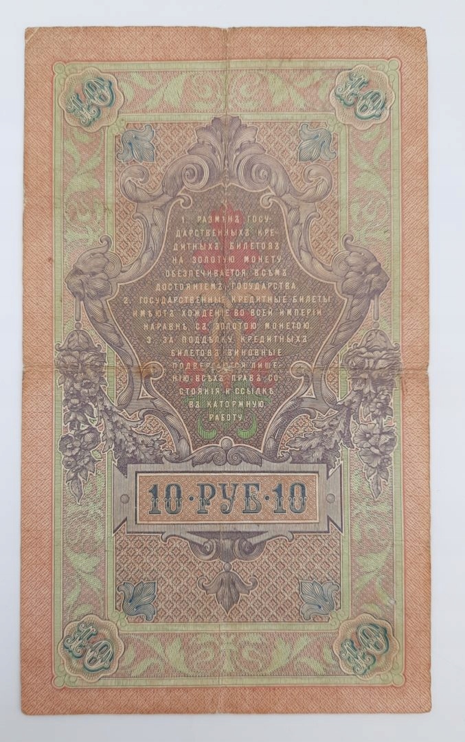 Стара банкнота Росії 10 рублів 1909 року