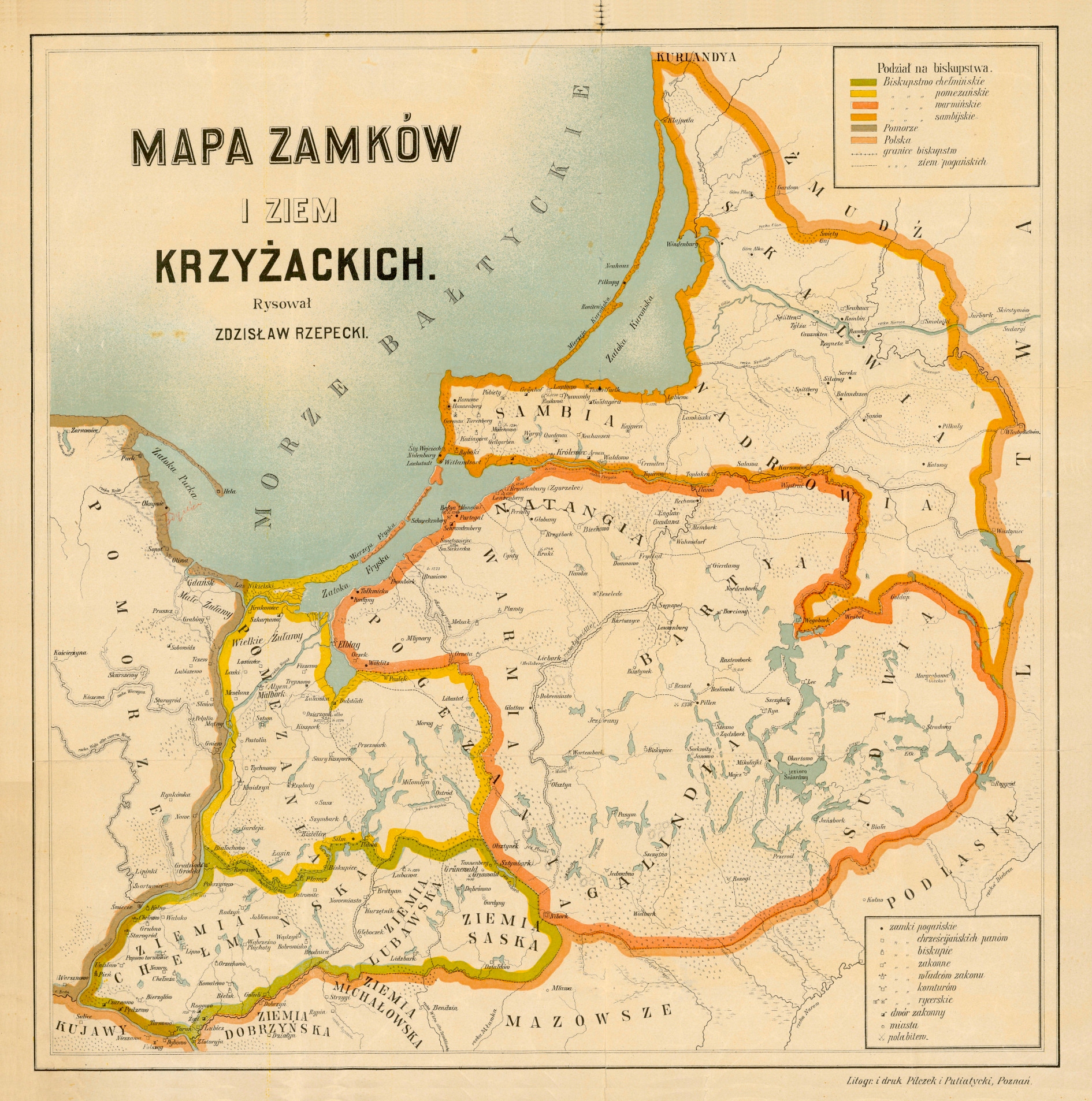 Стара КАРТА Польщі замків і тевтонських земель 60x60см