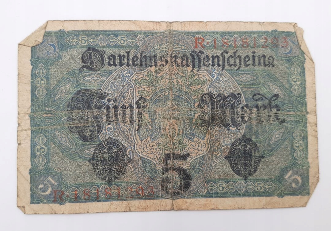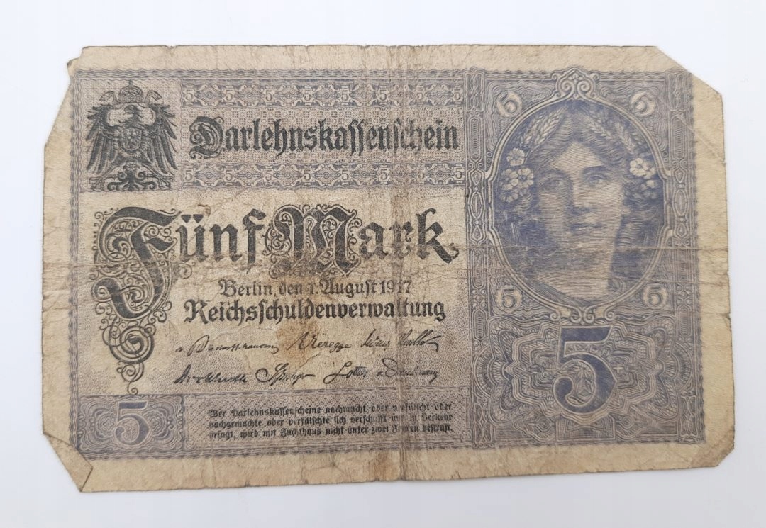Стара колекційна банкнота Німеччина 5 марок 1917 року