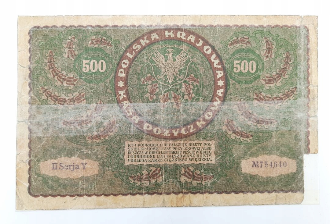 Стара колекційна банкнота номіналом 500 польських марок 1919 р. Польща