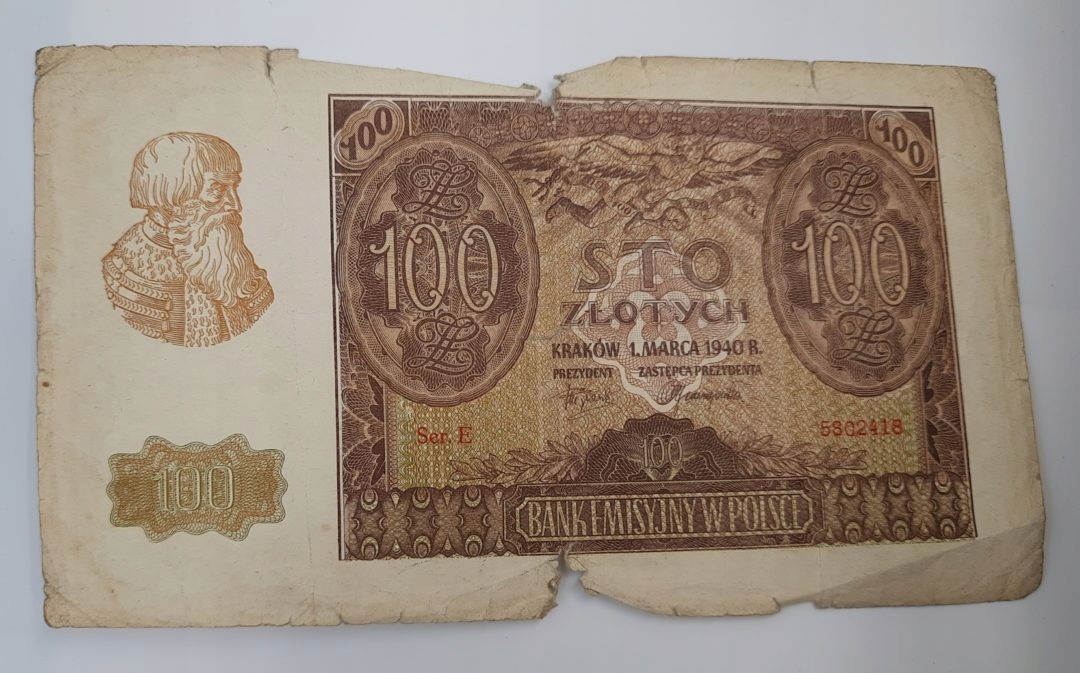 Стара колекційна банкнота Польща 100 злотих 1940 р