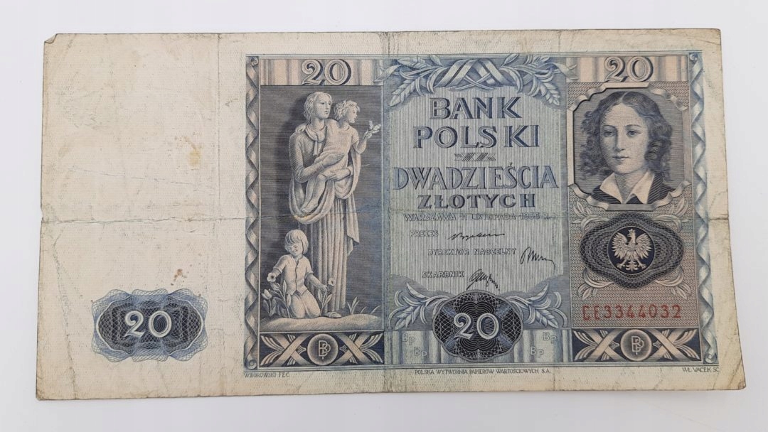 Стара колекційна банкнота Польща 20 злотих 1936 р