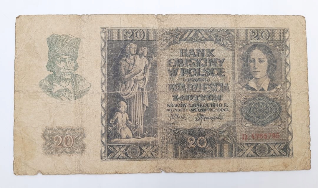 Стара колекційна банкнота Польща 20 злотих 1940 р