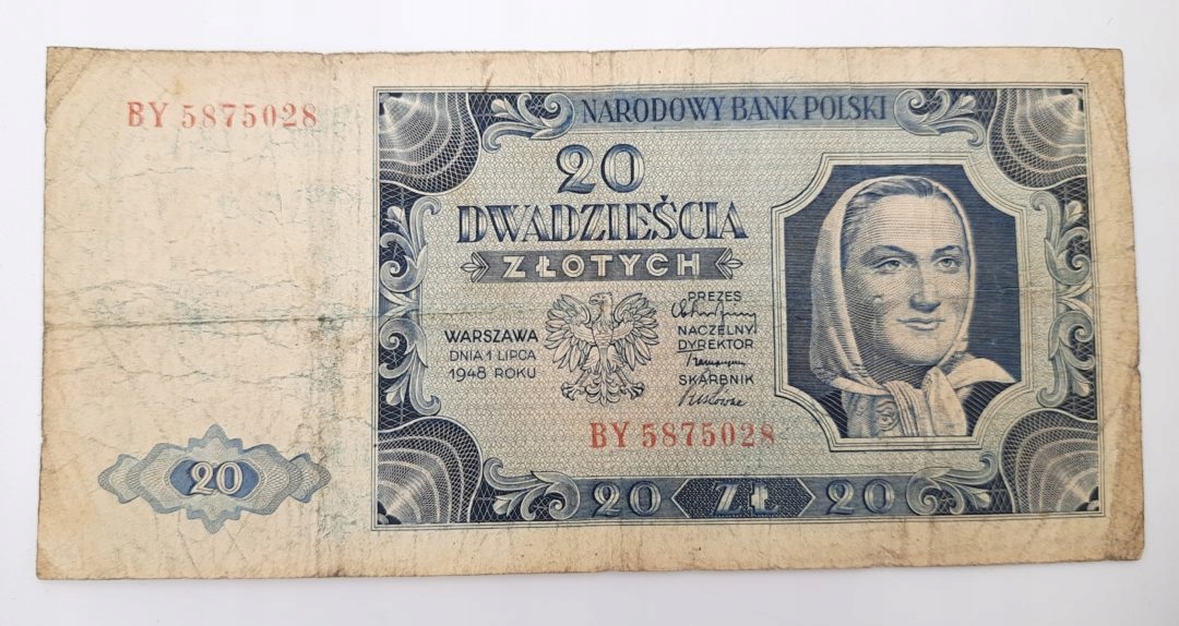 Стара колекційна банкнота Польща 20 злотих 1948 р
